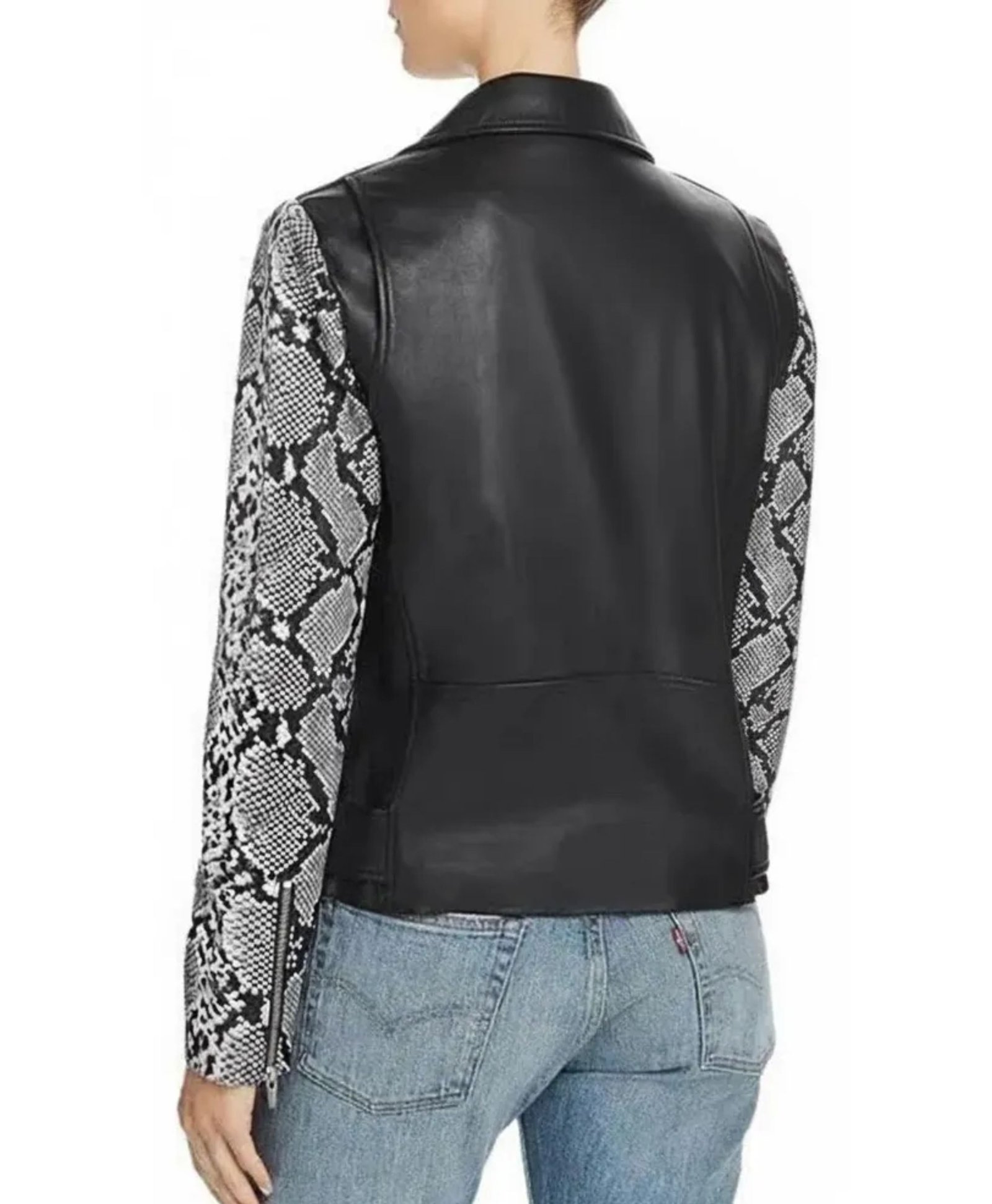 Let’s talk about Taylor Harding Why Women Kill Snake Pattern Jacket by Movie Jackets Hub. It is made up of real leather with viscose lining inside. It has zippered closure on the front and shirt style collar. The snake pattern suits on black color the most, the jacket is in black. Kirby Howell-Baptiste Why Women Kill Taylor Harding Snake Pattern Black Leather Jacket is a fashionable dressing to wear to parties and to big events. It is from the collection of women leather jackets that are suitable to wear to any event. Grab your right now and spend your evenings in style.