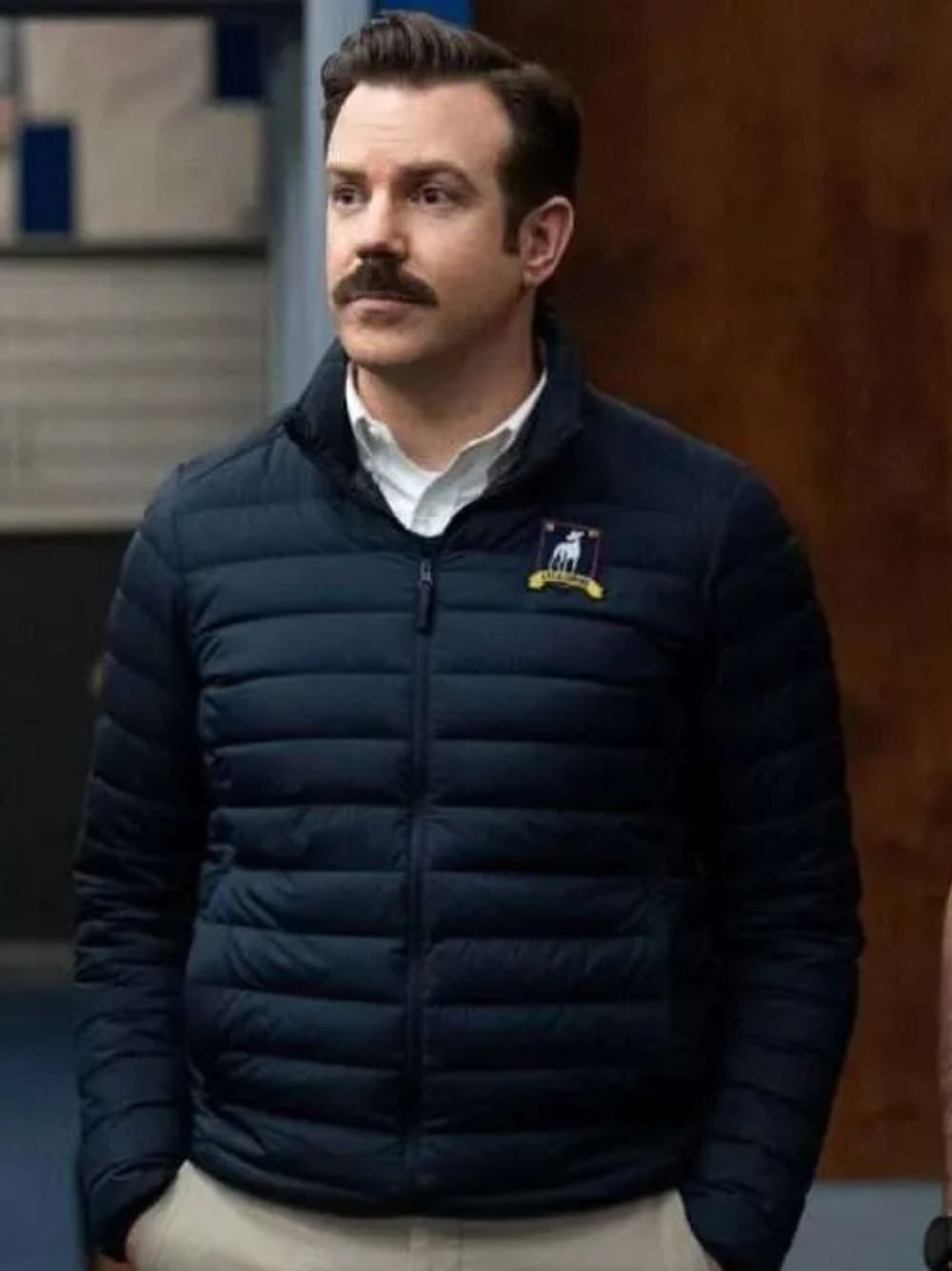 Ted Lasso is a sports-themed 2020 TV show that premiered on the Apple TV Plus network in 2020, with lots of fun movement. The main character, Ted, is an untrained soccer coach. He has given the opportunity to lead England’s professional football team. Jason Sudeikis actor portrayed Ted Lasso’s role. If you are a fan of Jason Sudeikis then you will like Ted Lasso S02 Jason Sudeikis Navy Blue Parachute Puffer Jacket.