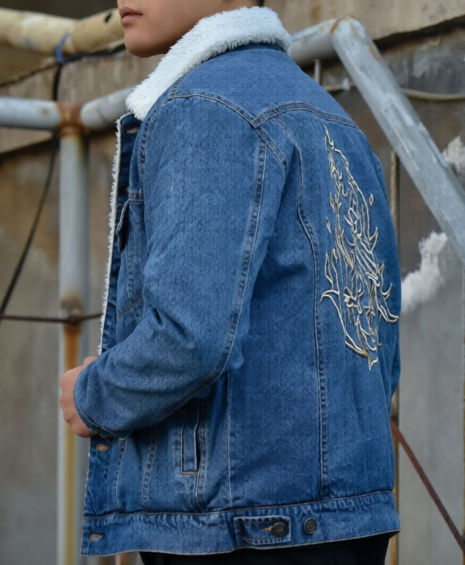 Tell Me Why Video Game Tyler Ronan Denim Shearling Fur Jeans Jacket