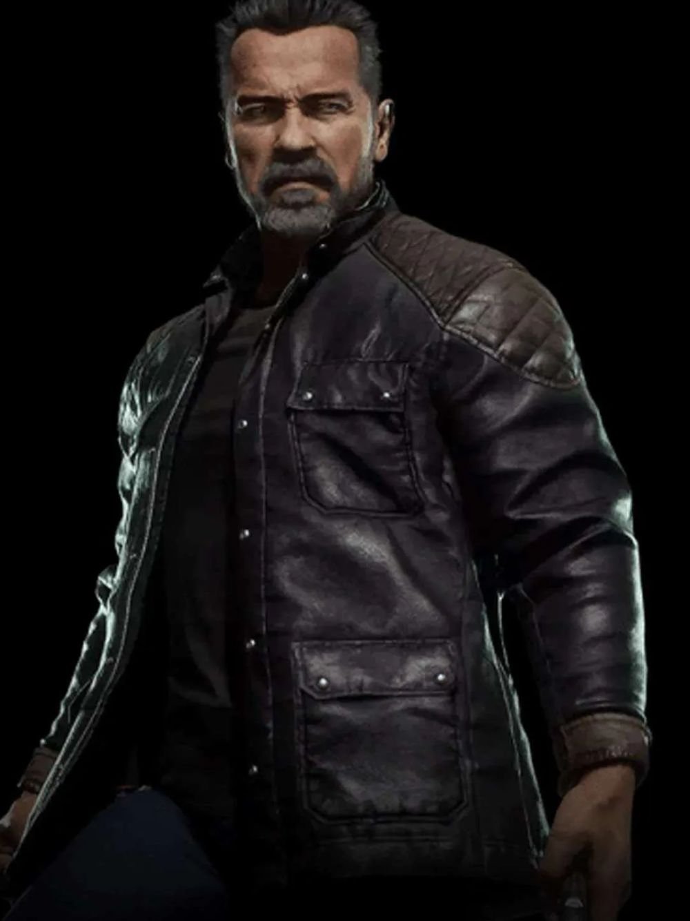 Step into the battleground with unstoppable style in the Terminator T-800 Mortal Kombat 11 Leather Jacket, brought to you by Movie Jackets Hub. Inspired by the legendary Arnold Schwarzenegger portrayal of the T-800 in Mortal Kombat 11, this jacket captures the rugged, battle-hardened essence of the cybernetic assassin.