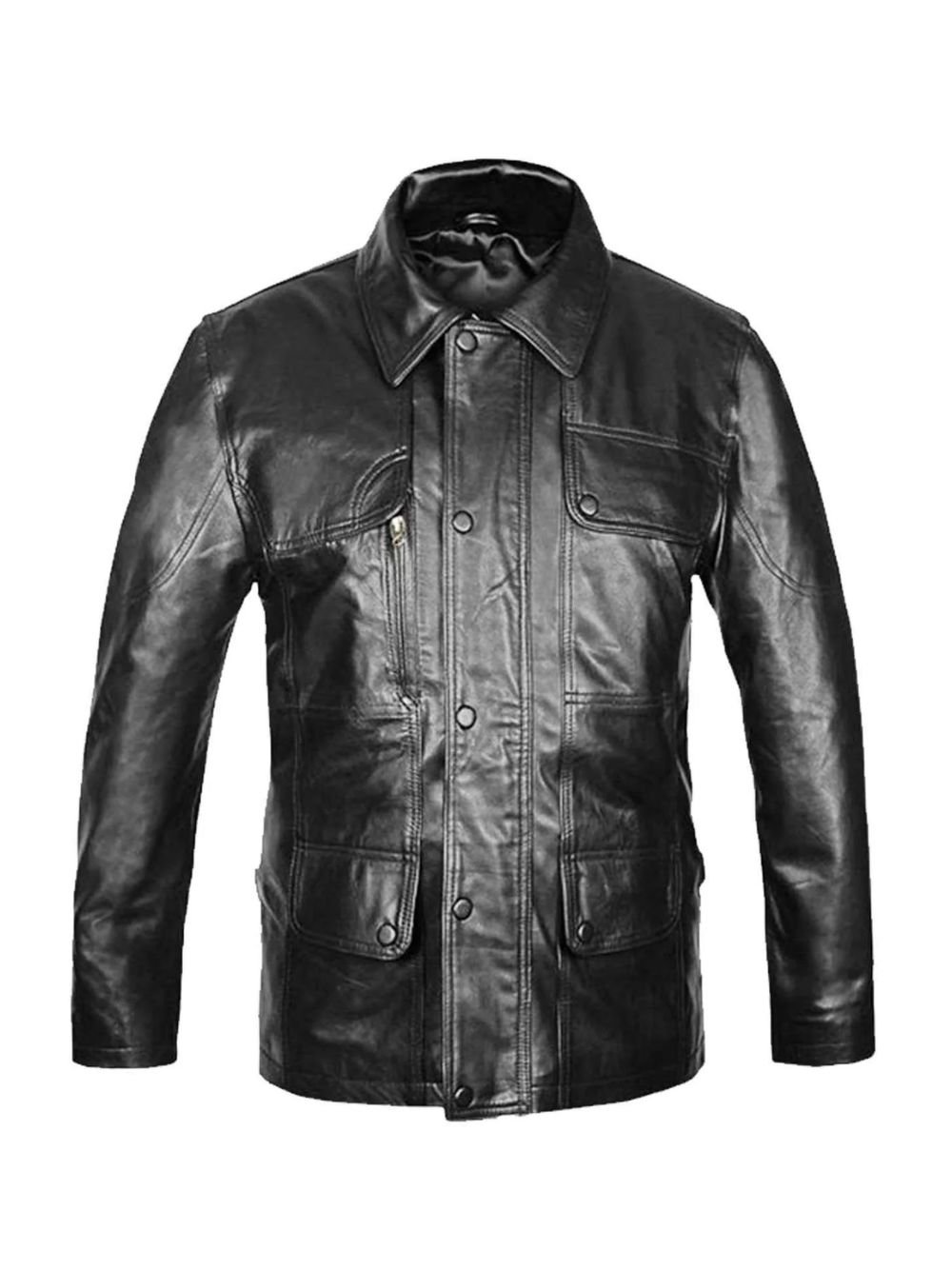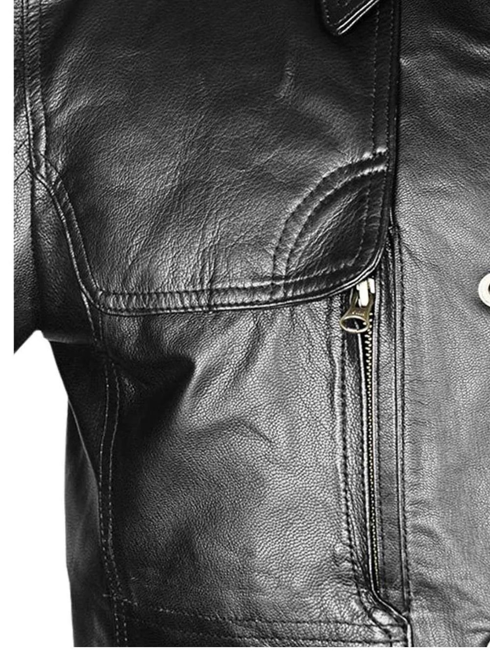 Crafted from high-quality real sheepskin leather, it features a semi-aniline finish for a sleek and premium look. The inner quilted polyester lining ensures maximum comfort and warmth. With its front zipper closure, classic biker collar, and multiple pockets, this jacket perfectly balances durability, utility, and style. Whether you’re a fan of Mortal Kombat, The Terminator, or just love bold leather fashion — this piece is built to make a statement.