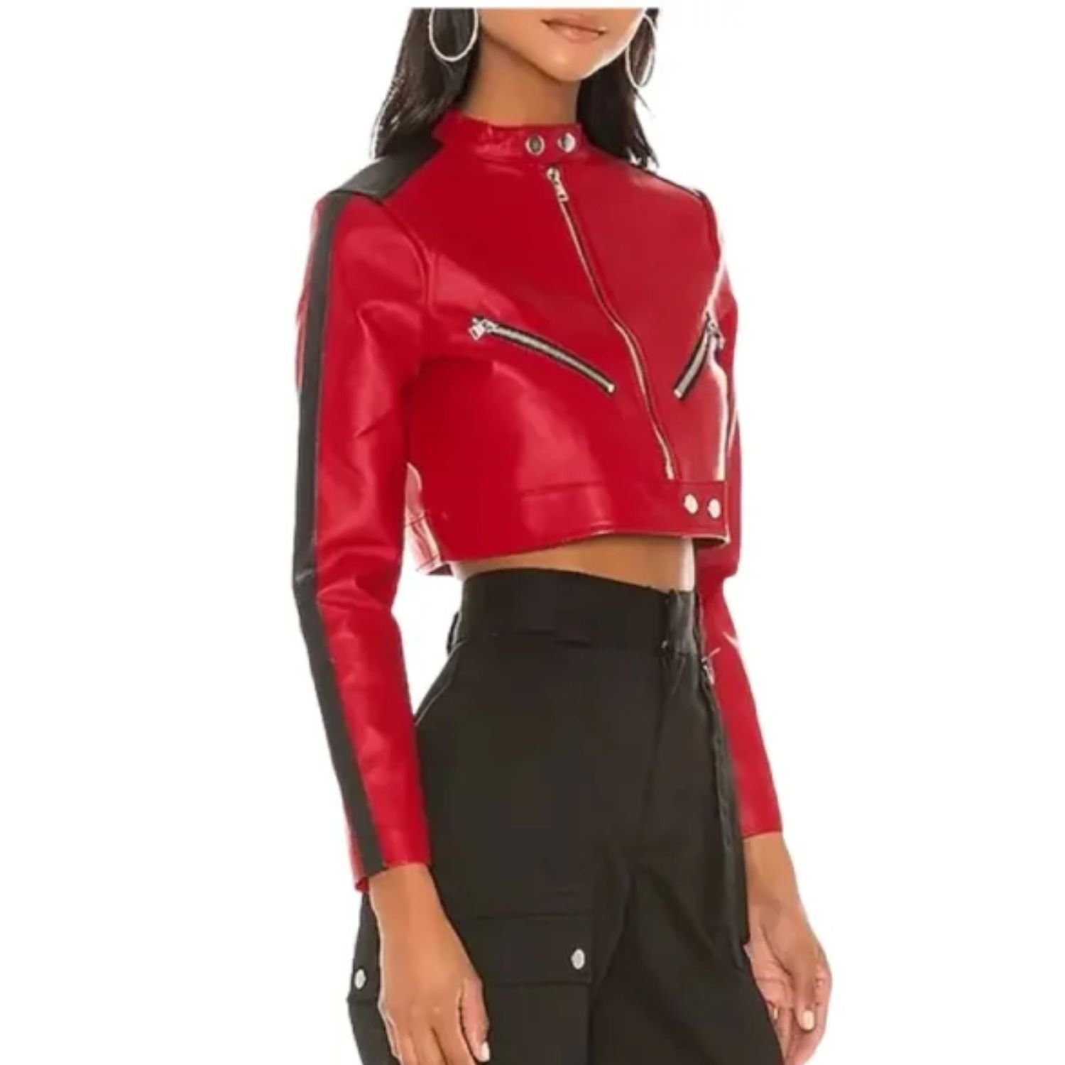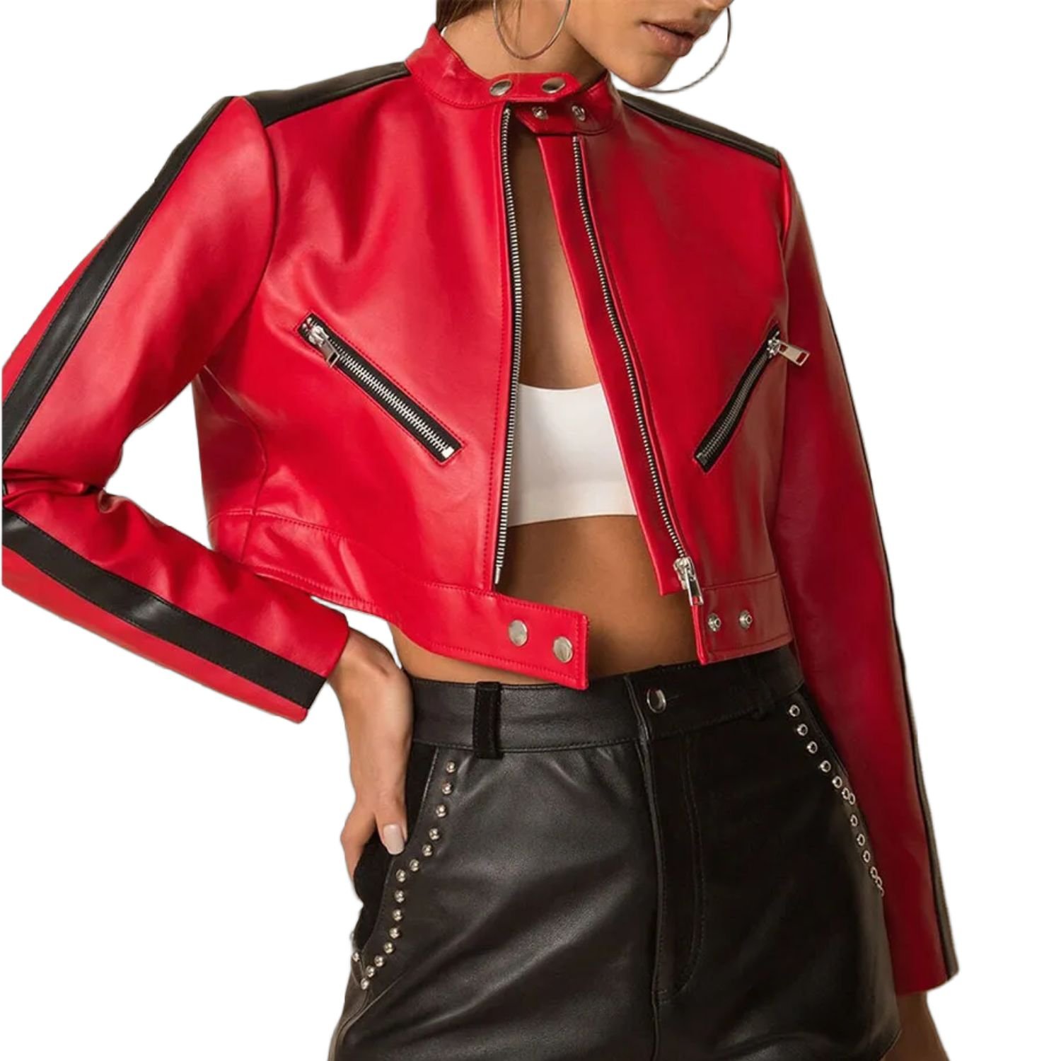 Men and Women Thandi Cropped Racer Leather Jacket New 2025
