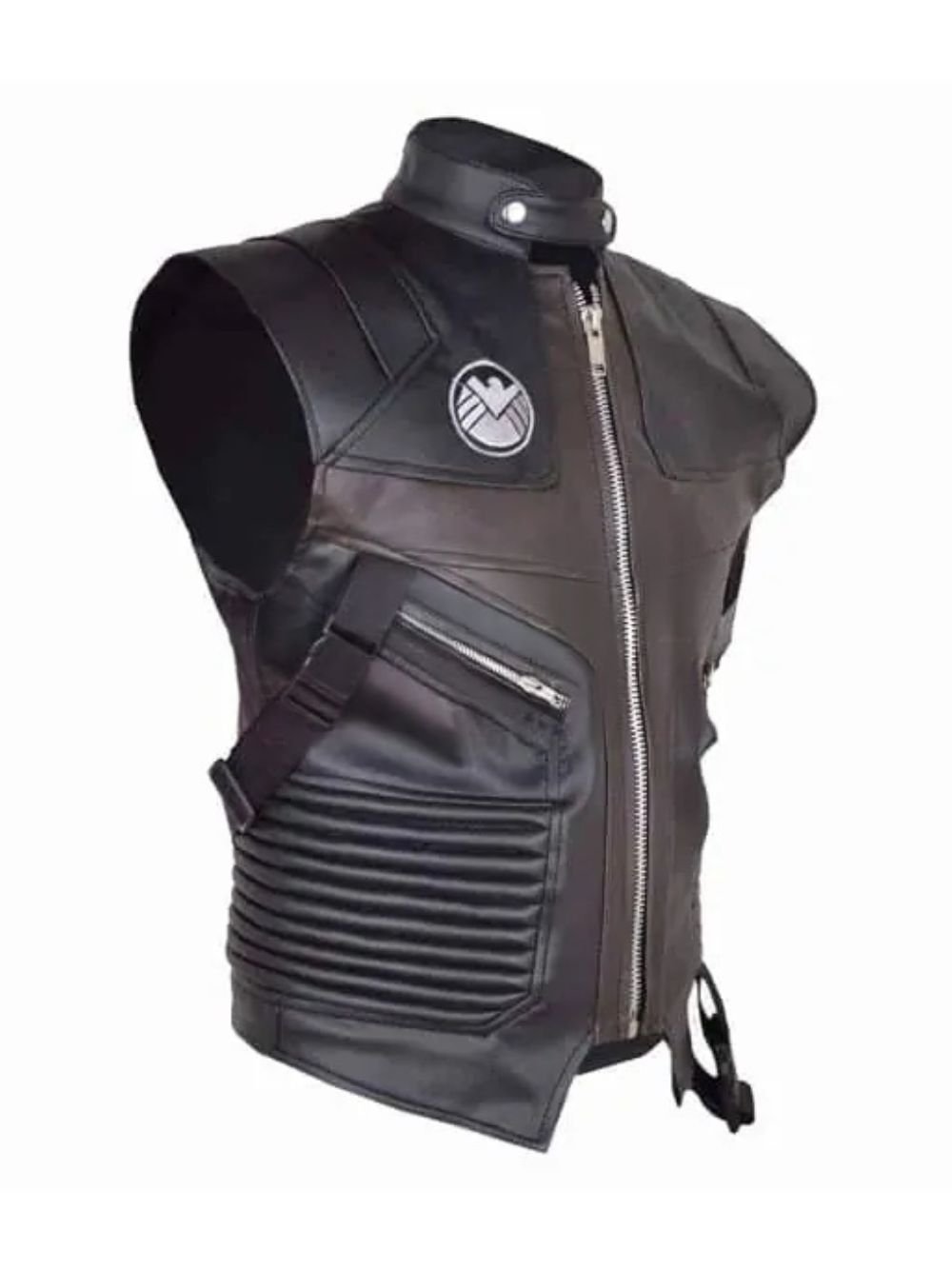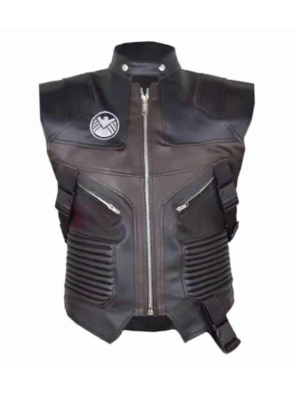 It looks good with the stand-up collar. It is practical to use because the front features a zip closure. The vest’s stunning design on the shoulders and sides is its best feature. Black leather patches with buckles have a distinct appearance. It is comfortable to wear for outdoor activities, but it is also appropriate for parties. Young boys would adore having this Jeremy Renner The Avengers Hawkeye Black Brown Leather Cosplay Vest in their closet.