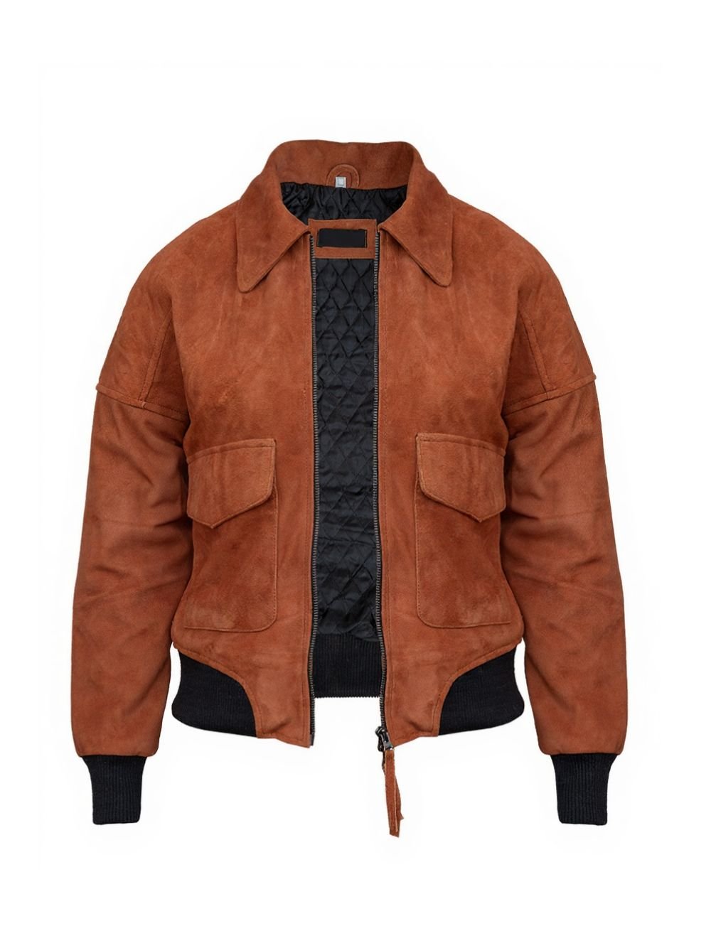 Crafted from high quality cotton fabric, the jacket feels lightweight yet durable, making it ideal for everyday wear. The smooth YKK zipper closure ensures a secure fit, while the turn-down style collar adds a classic bomber touch. Inside, the soft viscose lining enhances comfort, and the rib-knitted cuffs provide a snug finish. Finished in a warm brown shade, this cropped design pairs effortlessly with high-waisted jeans, skirts, or casual layers for a bold, fashion-forward appearance.