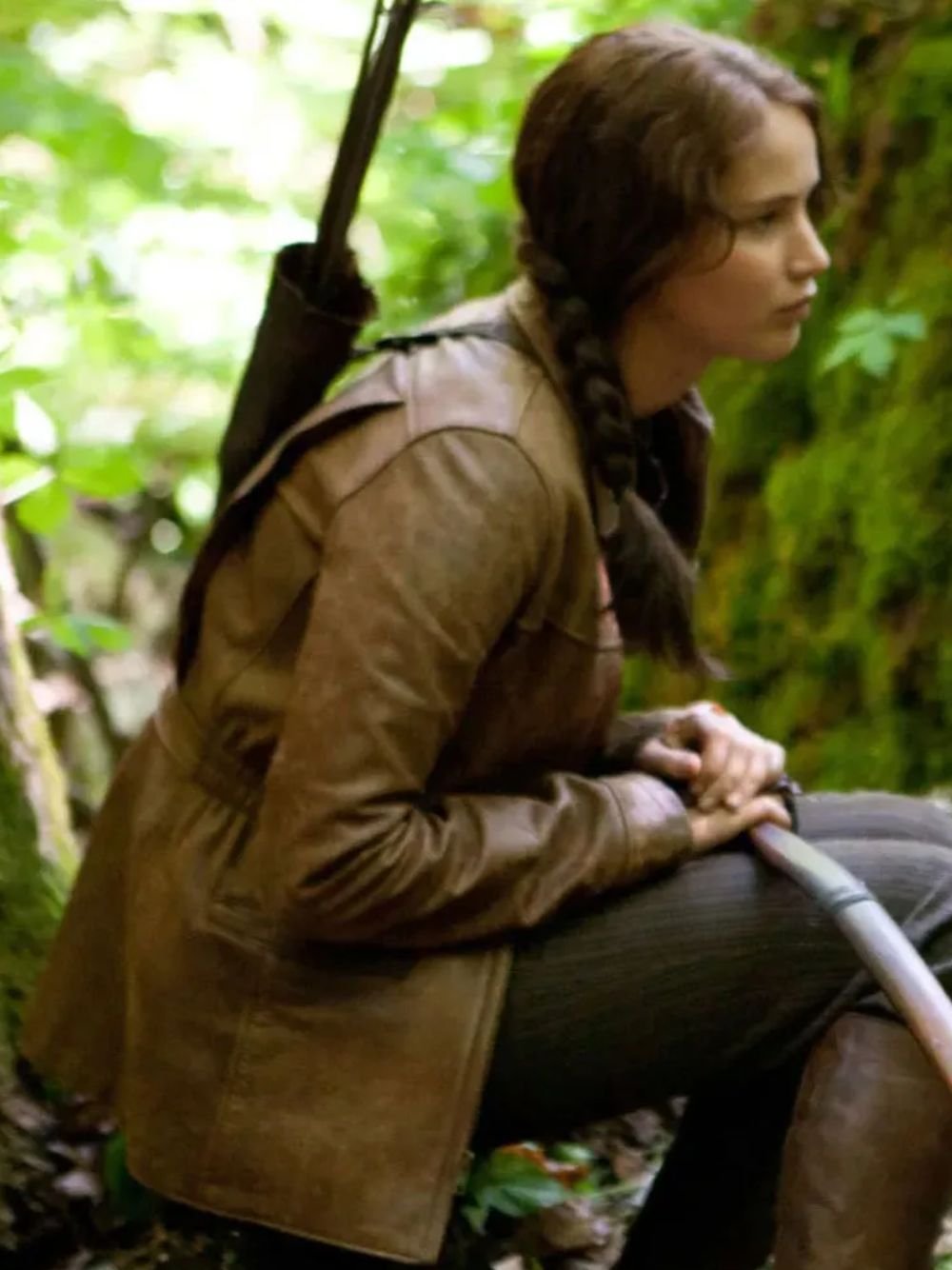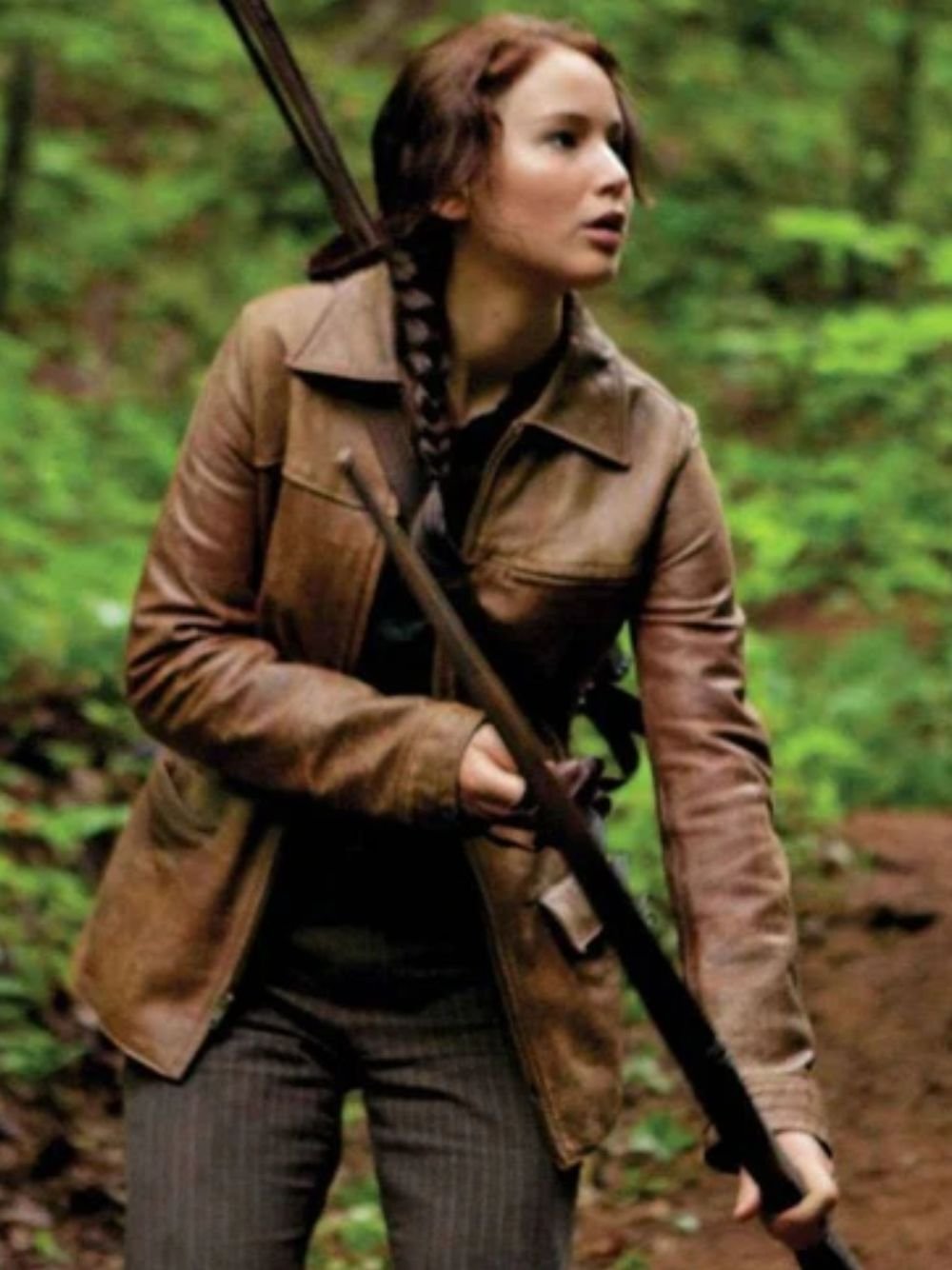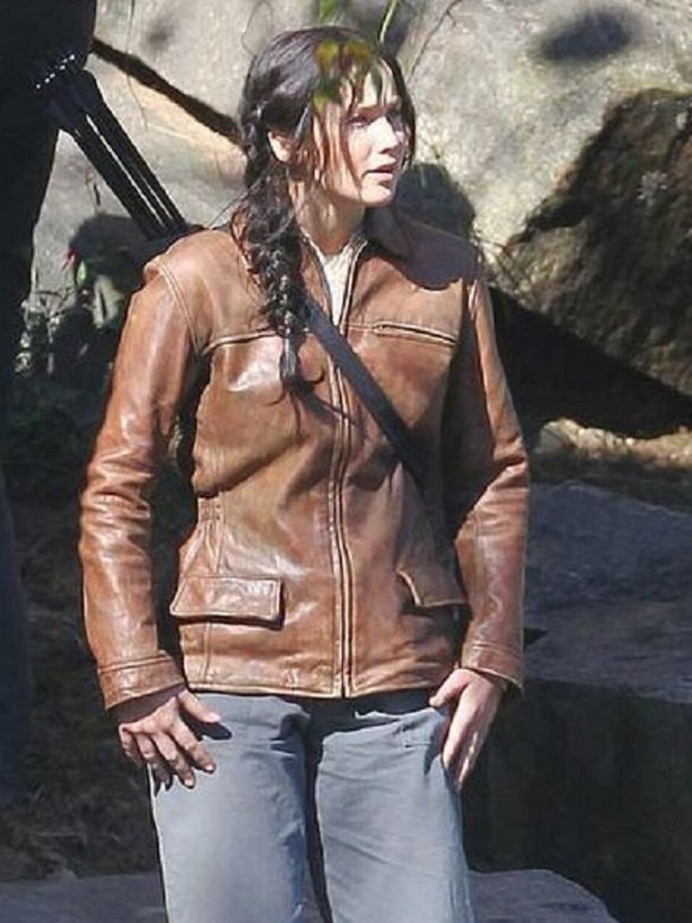 Jennifer Lawrence Movie The Hunger Games Katniss Everdeen Brown Leather Jacket