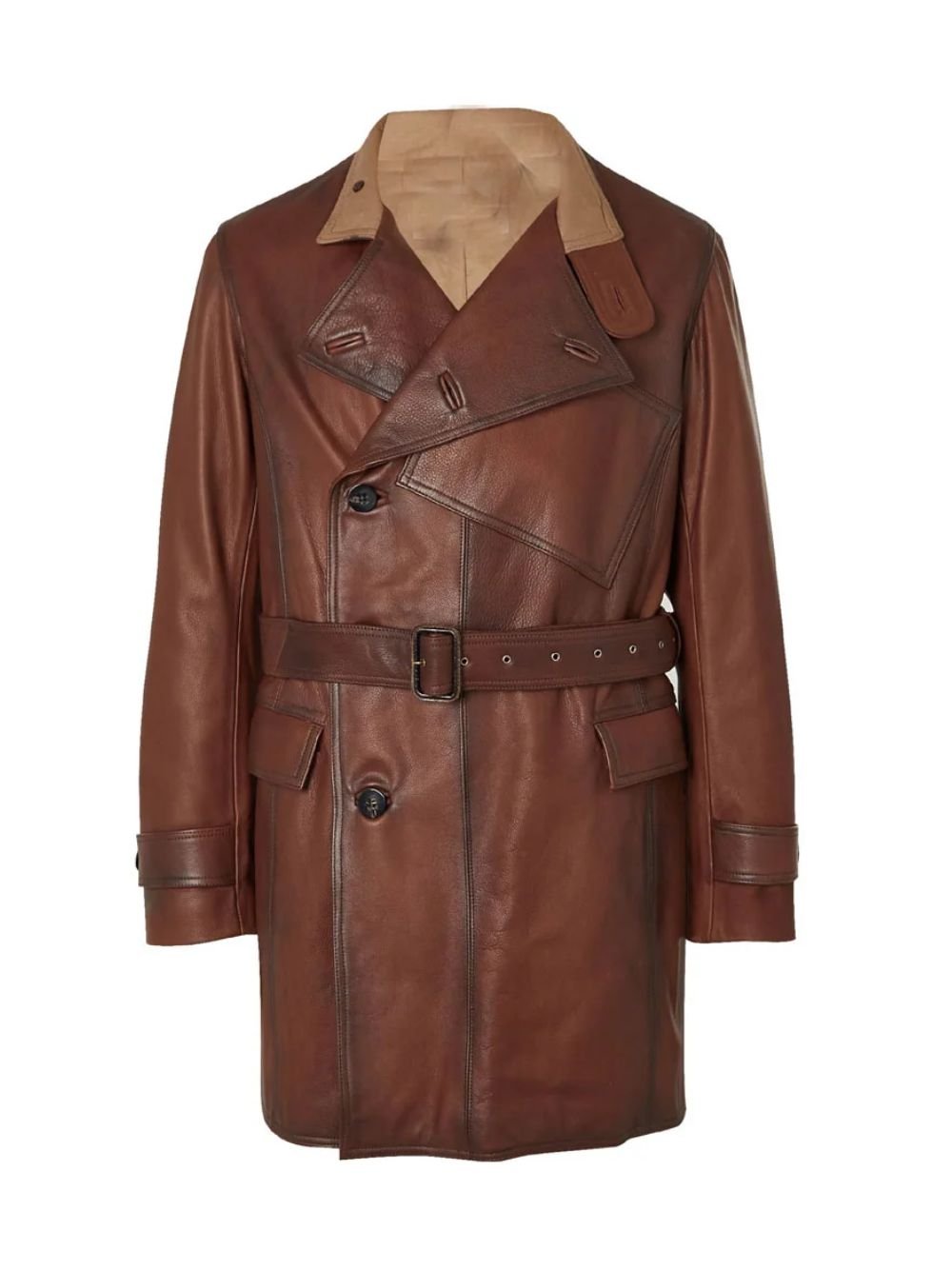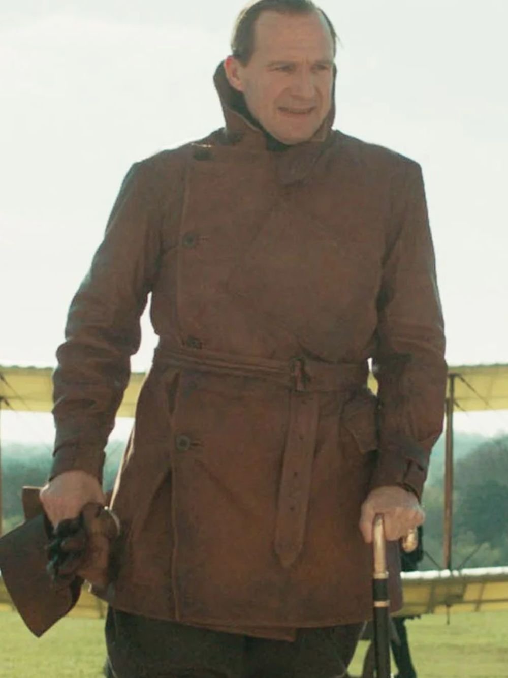 Ralph Fiennes Movie The King’s Man Duke of Oxford Brown Real Leather Coat