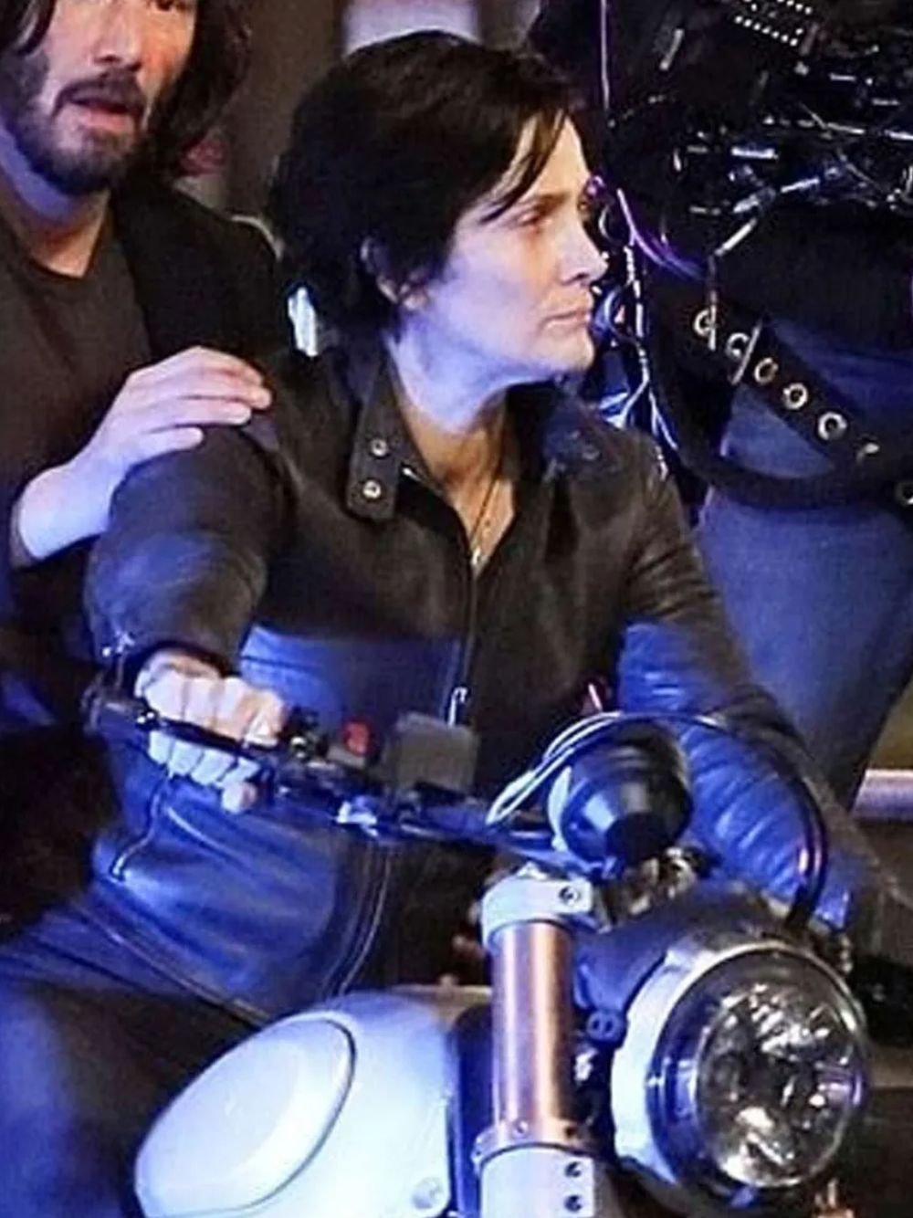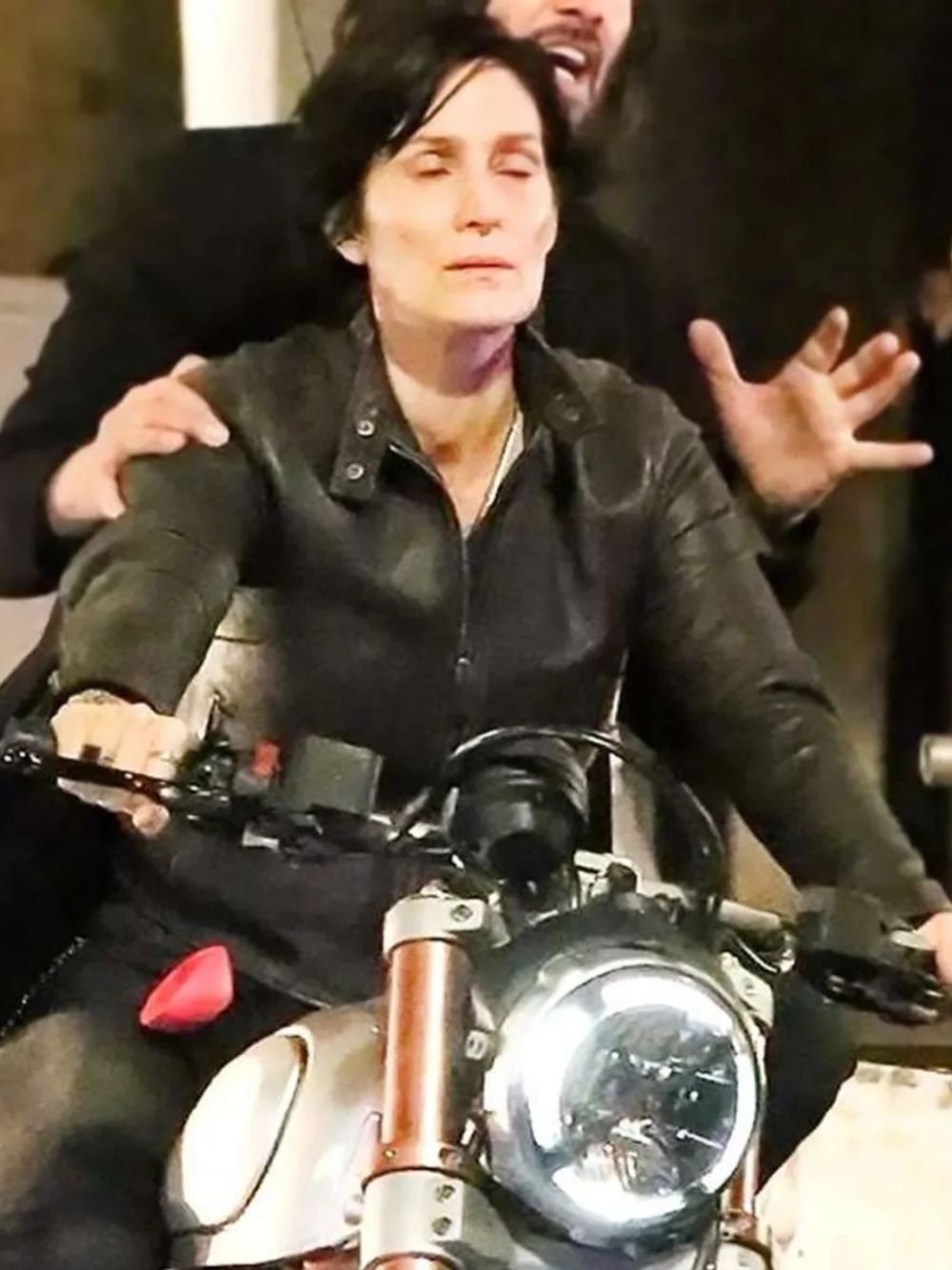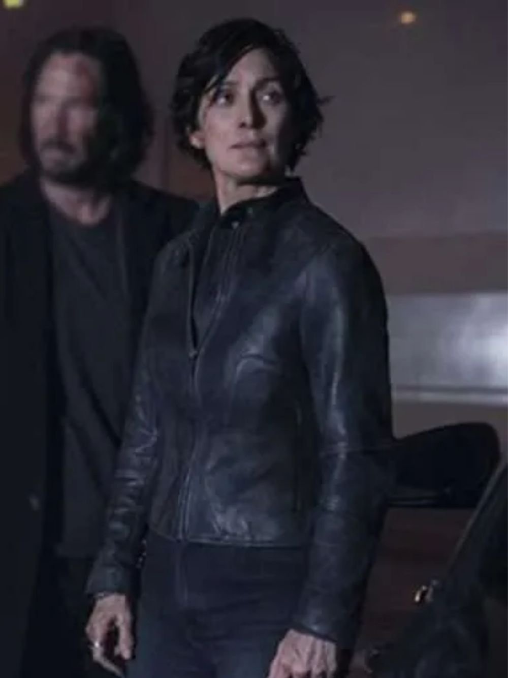 Carrie Anne Moss The Matrix 4 Trinity 2021 Black Biker Slim Fit Leather Jacket