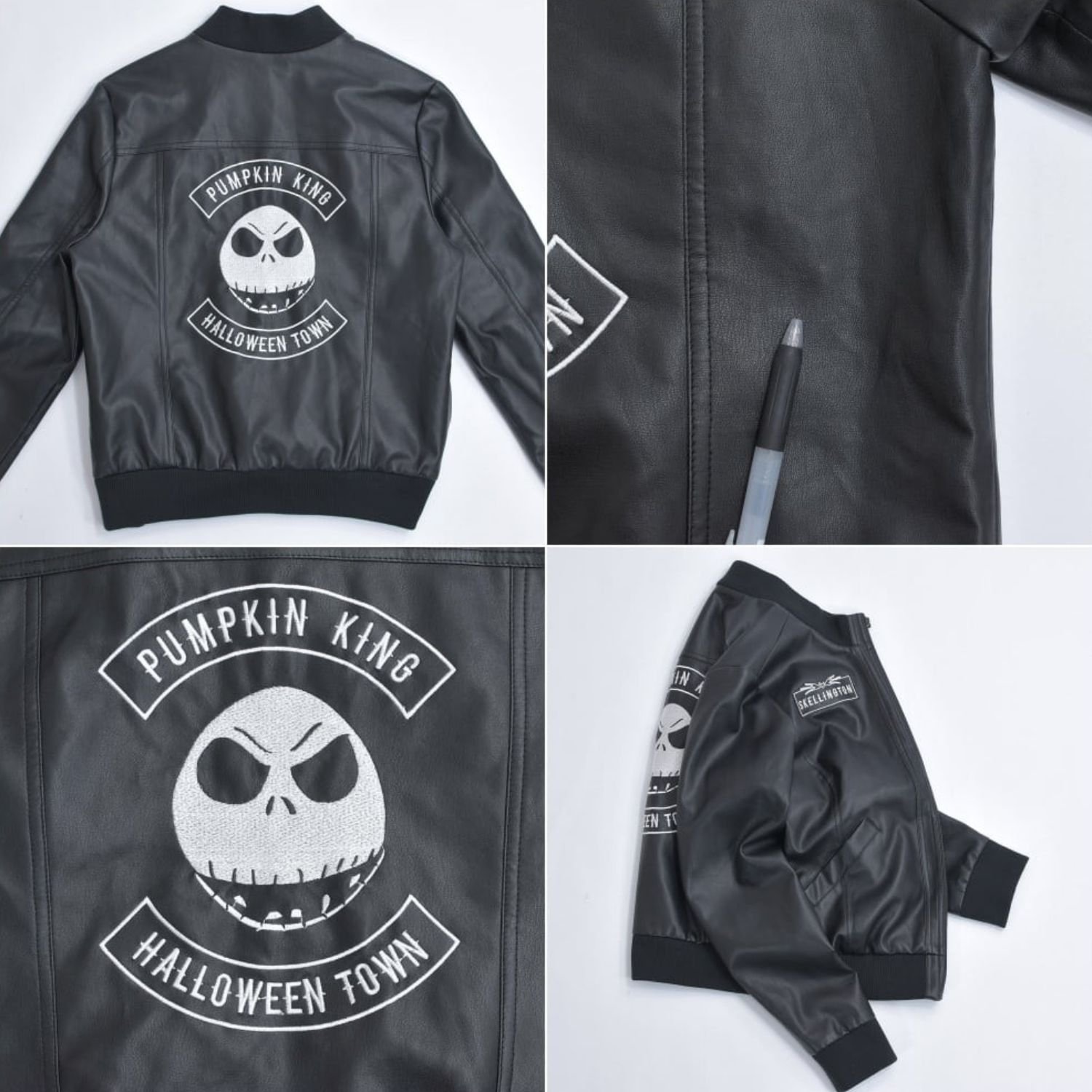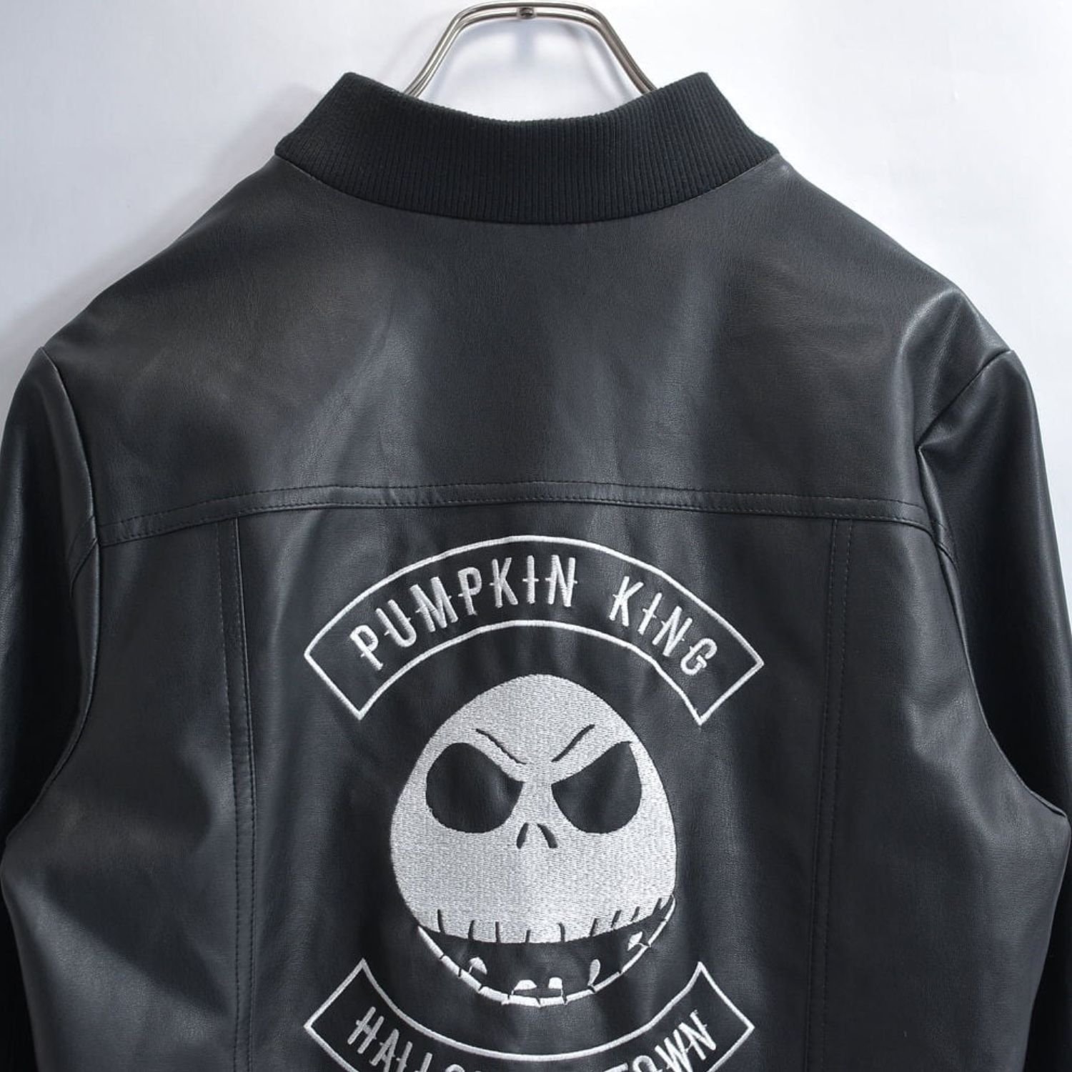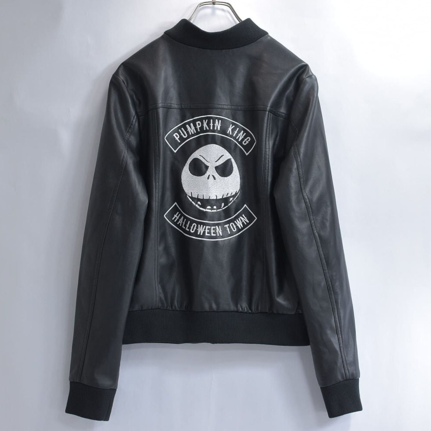 Danny Elfman The Nightmare Before Christmas Pumpkin King Halloween Town Jack Skellington Black Leather Bomber Jacket
