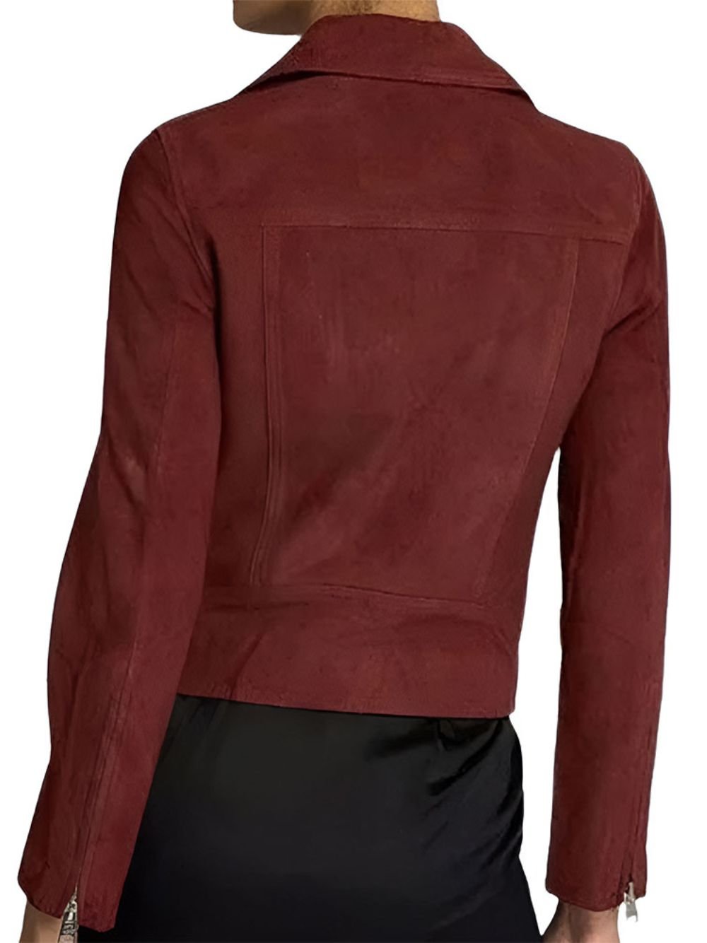 Crafted from premium suede leather, the jacket offers a rich texture and a deep maroon tone that instantly elevates any outfit. The lapel-style collar and front zipper closure strike a perfect balance between classic and contemporary, while the zippered cuffs add a subtle edge that enhances the overall silhouette.