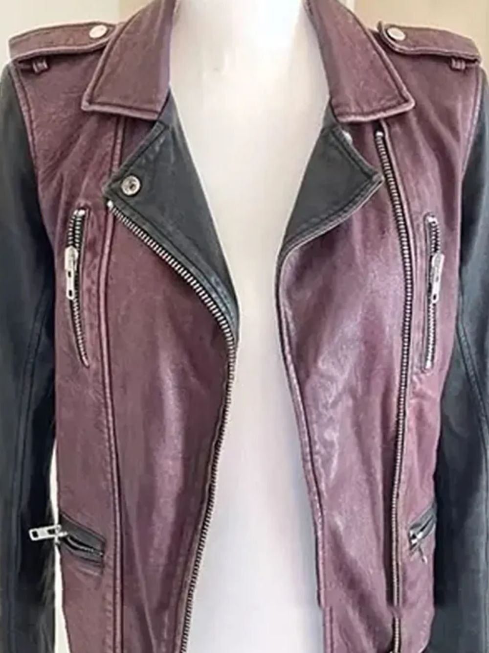 The Sex Lives of College Girls Alicia Purple and Black Leather Jacket