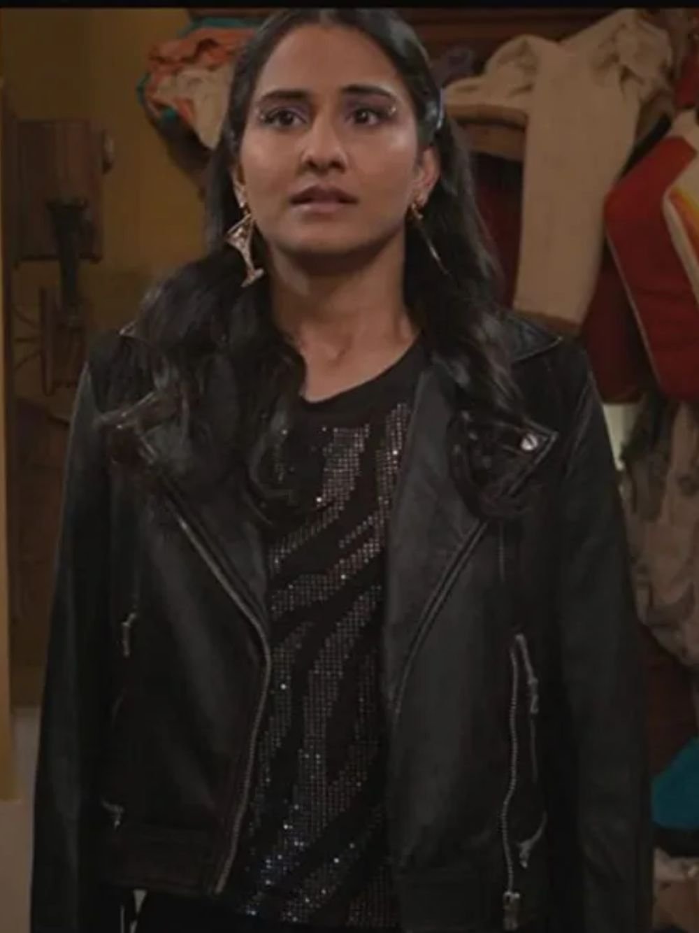 Amrit Kaur The Sex Lives of College Girls Bela Biker Black Leather Jacket