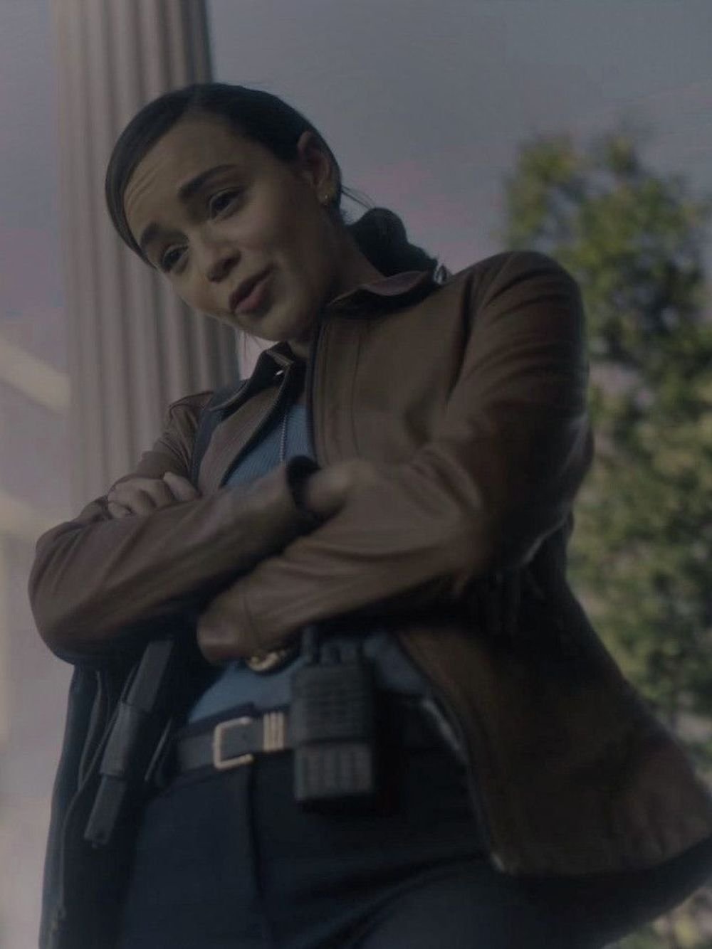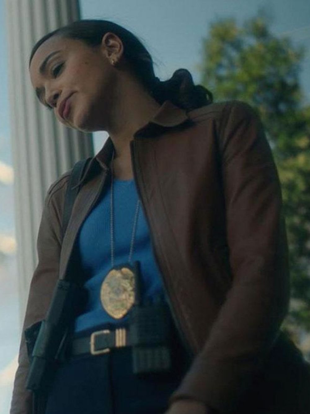 Ashley Madekwe The Umbrella Academy Brown Leather Jacket