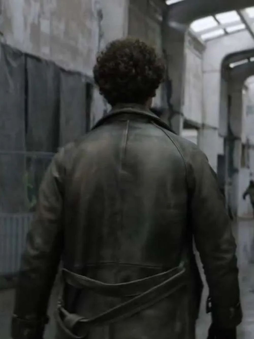 The silhouette of the Tristan Zanchi coat is designed to be both authoritative and functional. It features a traditional lapel collar that adds a touch of classic formal structure to the rugged leather exterior. The front is secured with a heavy-duty buttoned closure, which reinforces the vintage field-coat aesthetic while providing a secure fit against the wind. The full-length sleeves are finished with clean open hem cuffs, maintaining a streamlined profile that avoids unnecessary bulk. This careful tailoring ensures that the coat drapes elegantly from the shoulders, creating a powerful silhouette that is instantly recognizable to fans of the franchise.