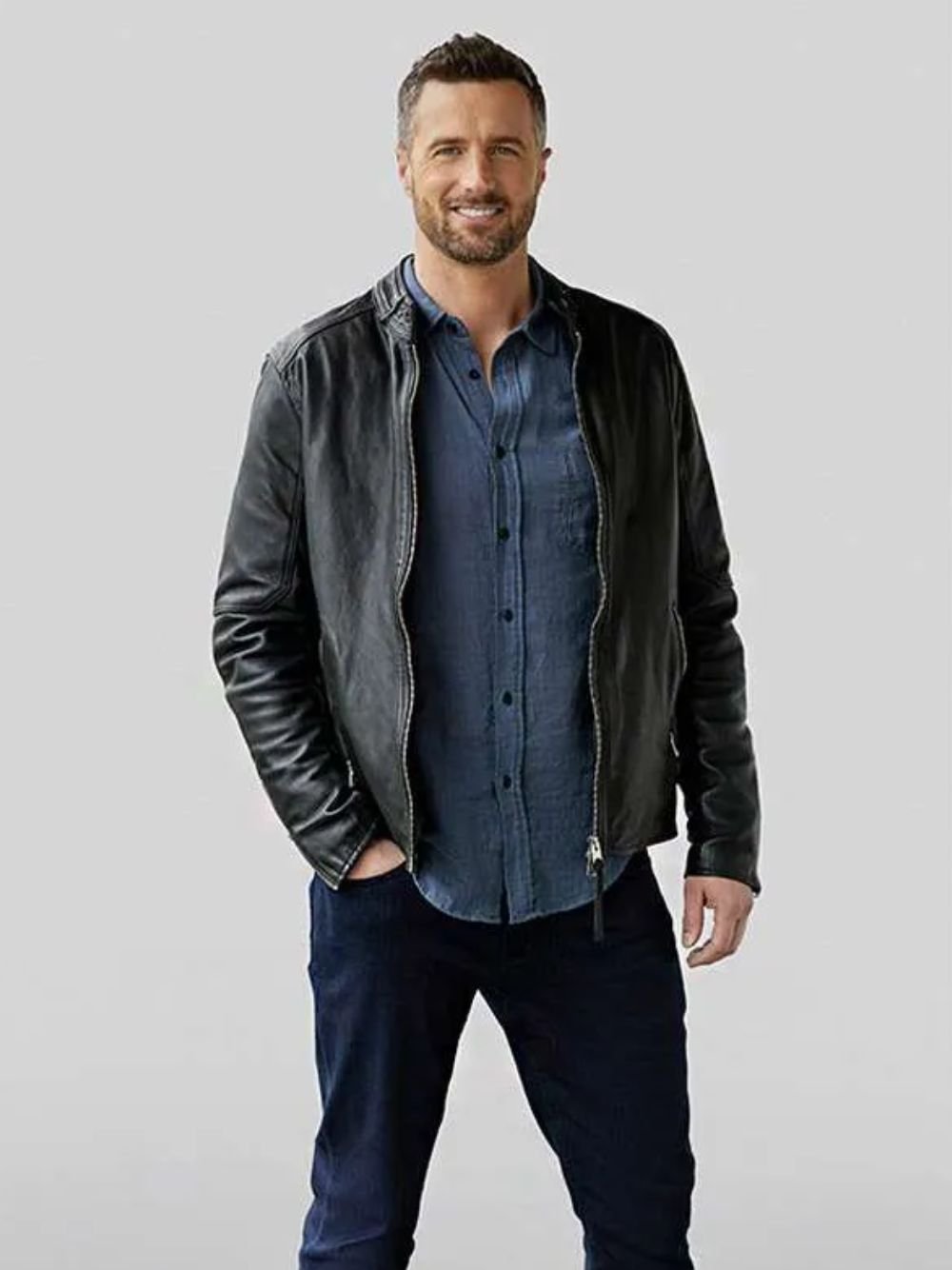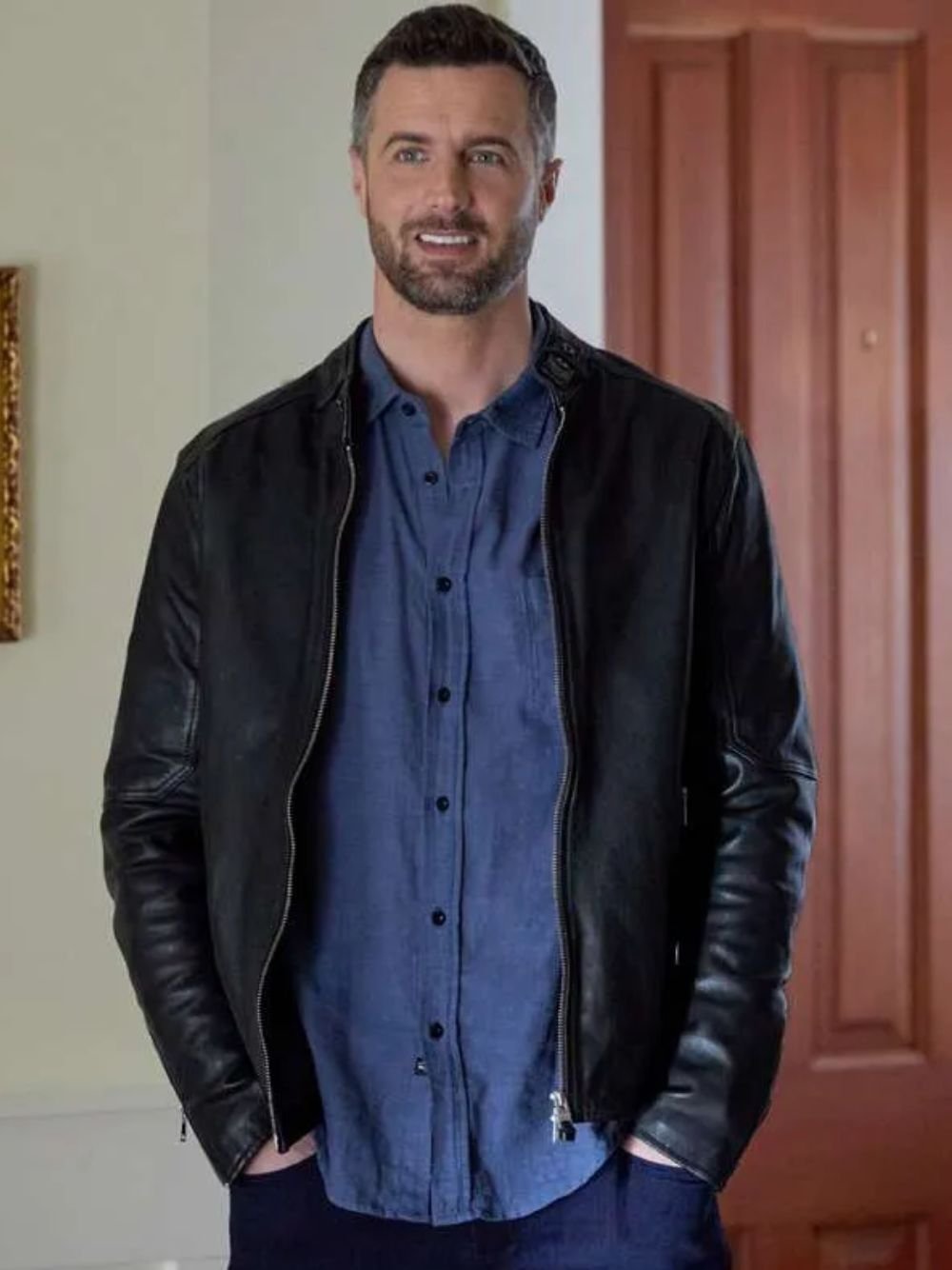 Brendan Penny TV Series The Wedding Cottage 2023 Evan Stanford Black Leather Jacket