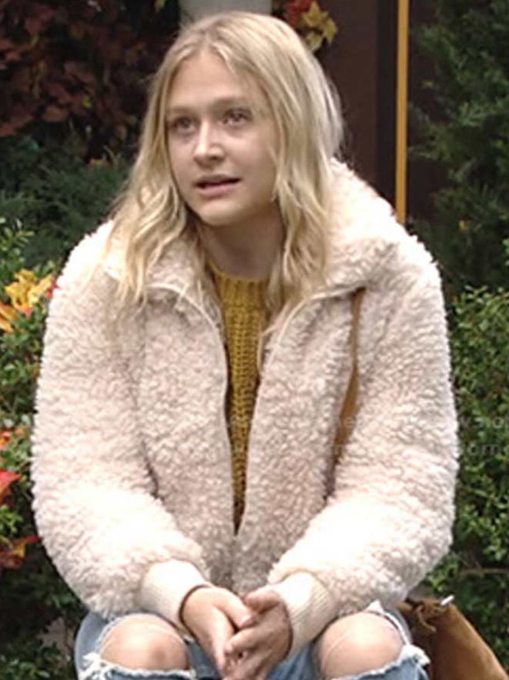 Alyvia Alyn Lind The Young and The Restless Faith Newman White Sherpa Bomber Jacket