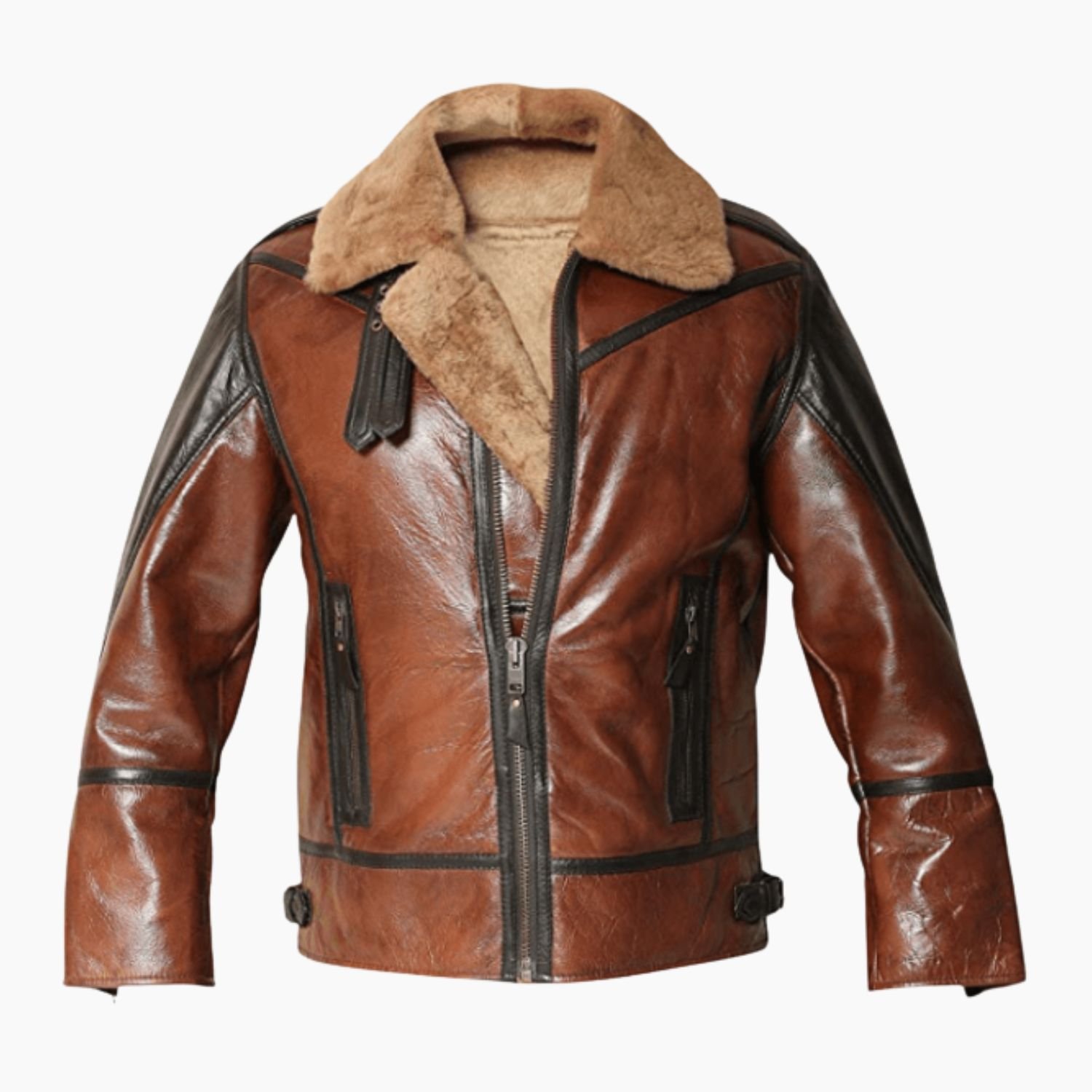 The Thompson Distressed Shearling Aviator SF Jacket is a masterful blend of historic military utility and contemporary high-street luxury. Meticulously crafted from 100% genuine sheepskin leather, this jacket features a specialized distressed finish that gives the deep brown hide a rugged, lived-in character. This weathered aesthetic captures the spirit of heritage flight gear while providing a soft, supple texture that only improves with age. Whether you are battling a mountain chill or navigating the urban winter, the Thompson jacket offers a commanding silhouette that emphasizes durability and timeless style.