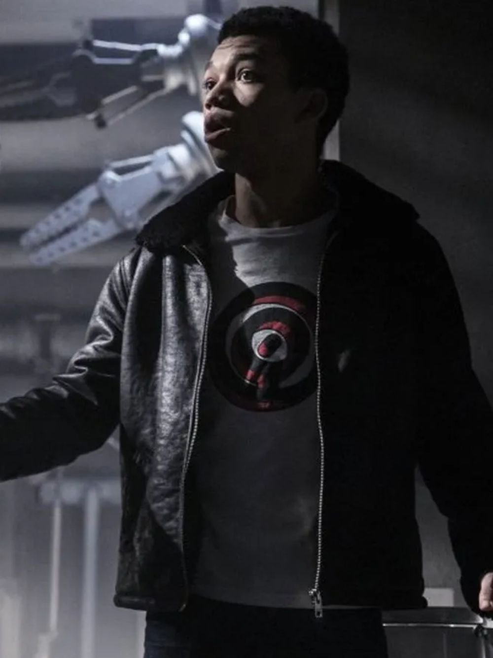 Justice Smith Pokémon Detective Pikachu Fur Collar Black Leather Jacket