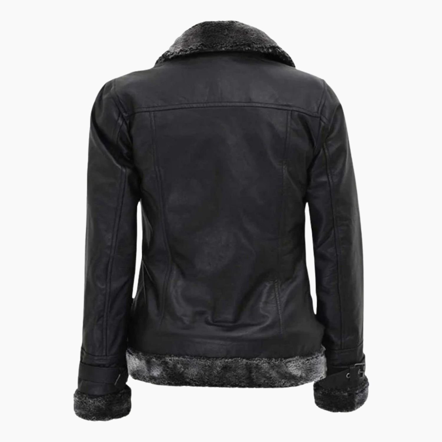 The interior of the jacket is a masterclass in thermal luxury, featuring a full lining of black genuine shearling fur. This monochromatic design creates a seamless, high end look while providing the natural insulation that only authentic wool can offer. The shearling acts as a highly efficient thermal regulator, trapping body heat to keep you warm in sub zero temperatures while remaining breathable to prevent overheating. The plush fur extends to the collar, which serves as a soft, insulating shield for the neck against biting winter chills. Unlike synthetic liners, the genuine shearling used in the Timothy jacket maintains its loft and softness for years, ensuring your comfort is never compromised.