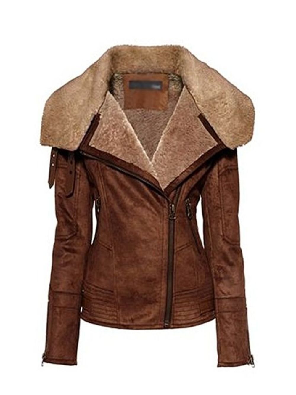 Everyone wants to look pretty in every function. In winter every wears a nice jacket. Real sheep leather is used to make this Tina Classic Super Clemzy Leather Jacket by Movie Jackets Hub that is very pure and fine stuff. The inner of the jacket is in real shearling fur lining. It has a YKK zipper closure front. It has a very stylish collar that is very good to look at. High-quality stuff is used to make this jacket. Two waist side pockets are designed on this jacket. Its color is very decent that is brown. The brown color gives a very soft and alluring look. This jacket is perfect for girls. girls who drive bike then this jacket give comfort and ease to them. It has a reasonable price for everyone. The jacket is very beautiful so get this jacket fast.