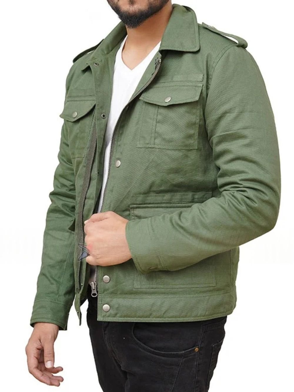 Ryan John Krasinski Olive Green Jacket is the manufacturing of high-quality cotton fabric. Furthermore, the Dr. Jack Ryan jacket has a soft internal design with viscose lining to smooth and comfortable. It has shirt style collar and snaps tab button over zipper closure. The jacket is perfect for all age groups and looks tremendous and beautiful. John’s Olive green jacket has a straight full-length sleeve and open hem cuffs, giving off a bright appearance. It has two side chest pockets and two side waist pockets where you can easily carry all your belongings when going on a hangout with friends or family. Jack Ryan olive green Jacket is now available at our store at a reasonable price, so make this outfit your ASAP.