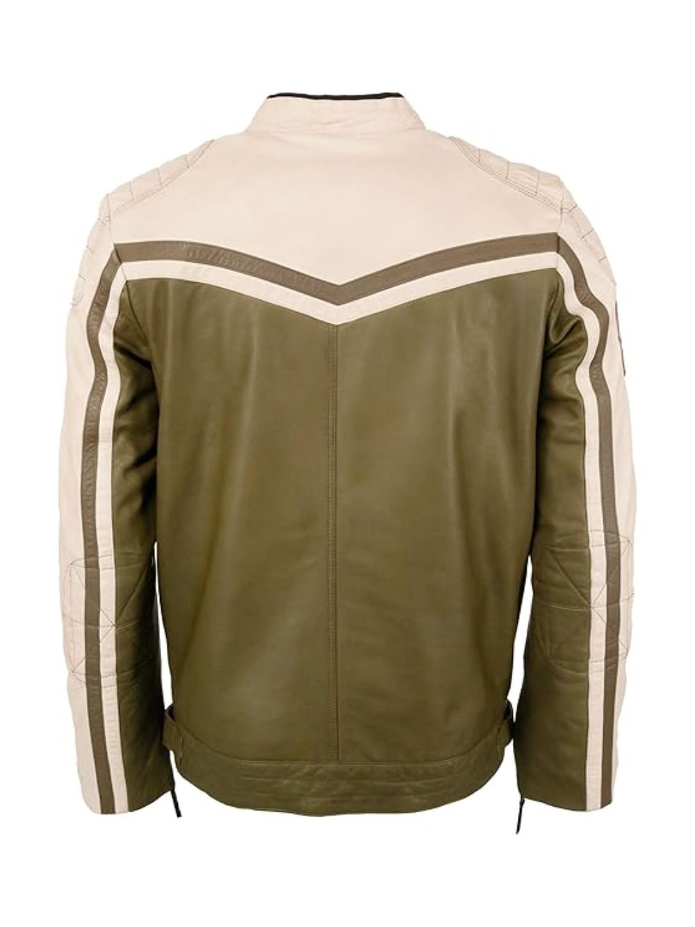 Top Gun Biker Olive Green and Off White Cafe Racer Quilted Leather Jacket With Patches