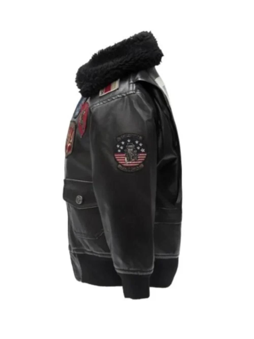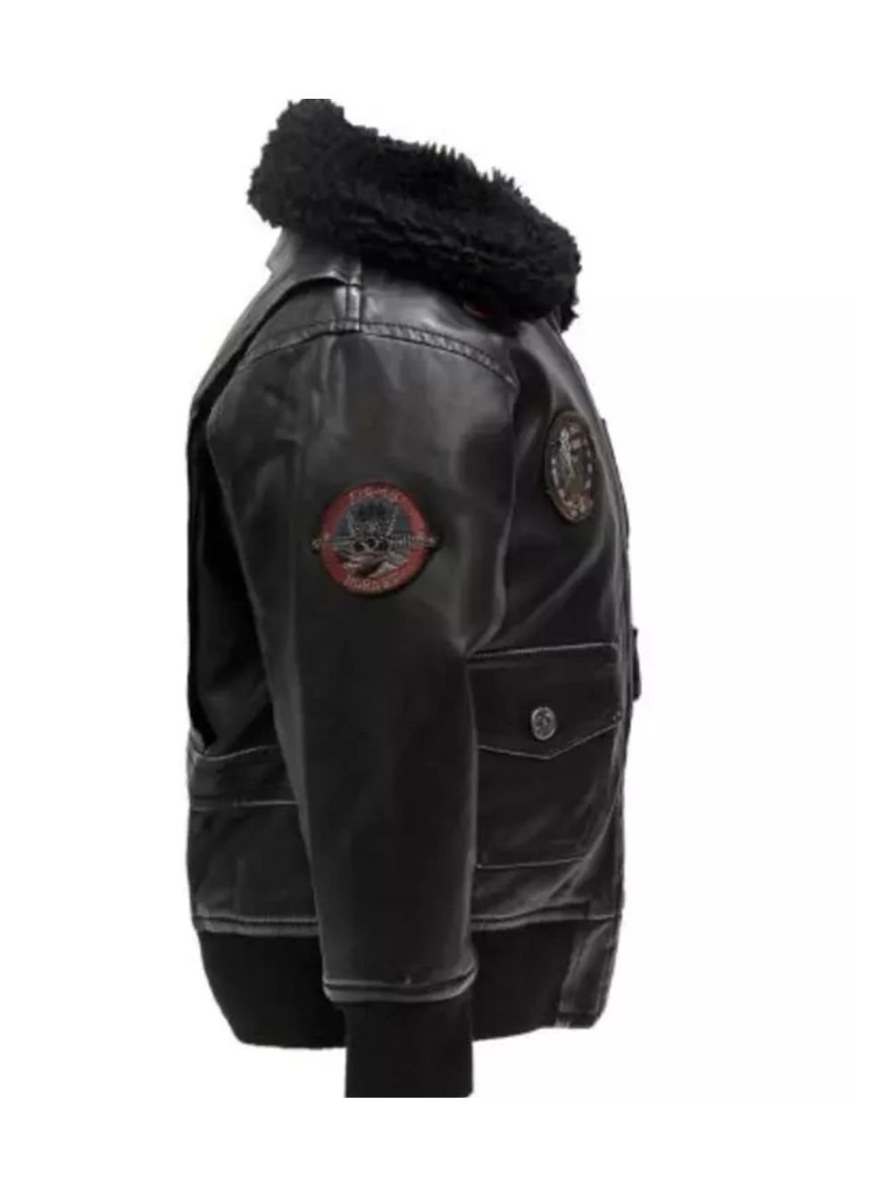 Top Gun G-1 Black Leather Aviator Bomber Jacket With Patches is a voguish bomber jacket with many catchy design details. It has made of genuine leather/faux leather. Moreover, it has full-length sleeves, rib-knitted hemline and cuffs, and fur style collar. You can order this classy Jacket from Movie Jackets Hub. Go and grab your stuff!