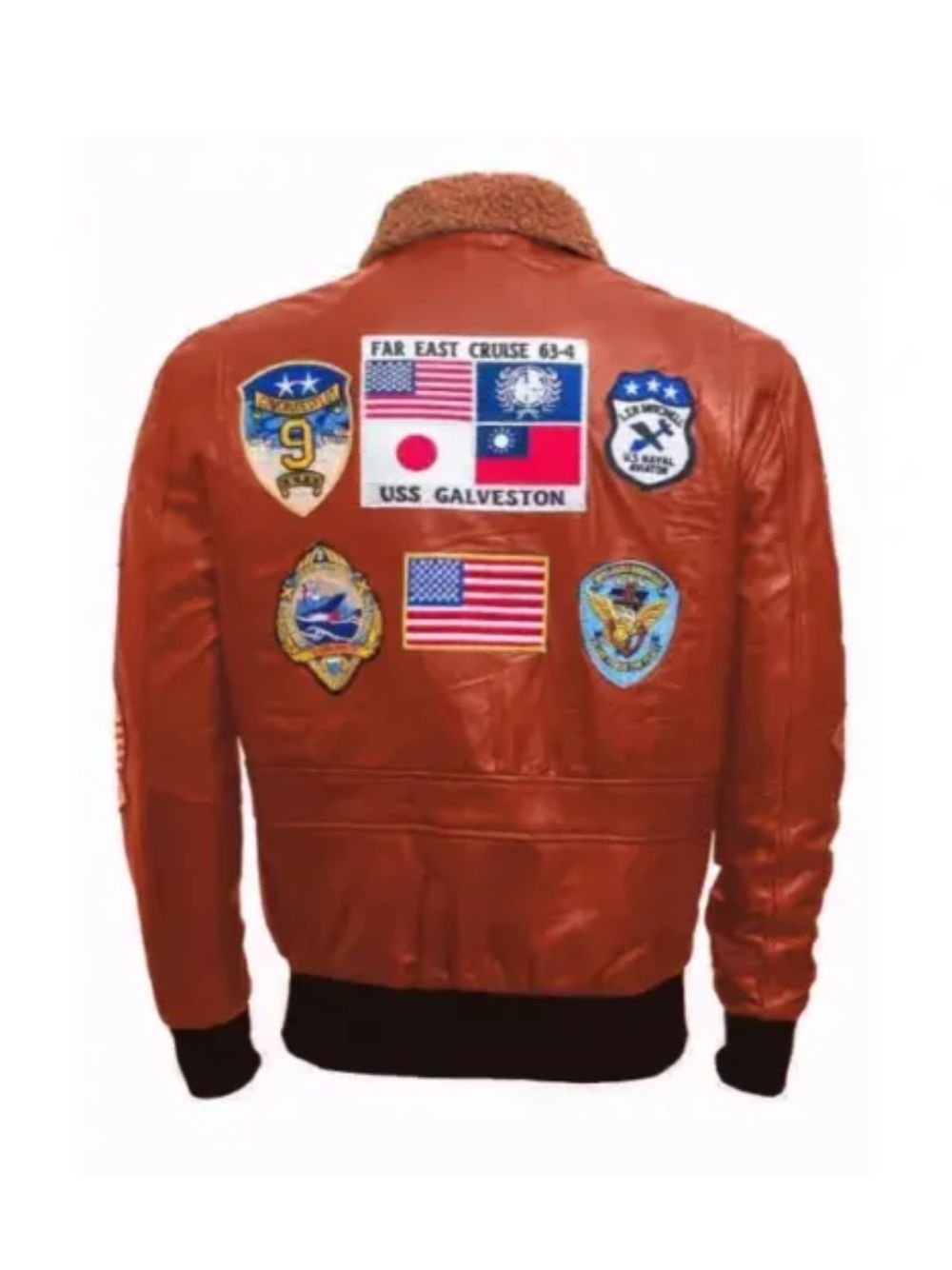 Top Gun G-1 Ten Naval Aviator Far East Cruise 63-4 Patches Rust Bomber Sherpa Leather Jacket