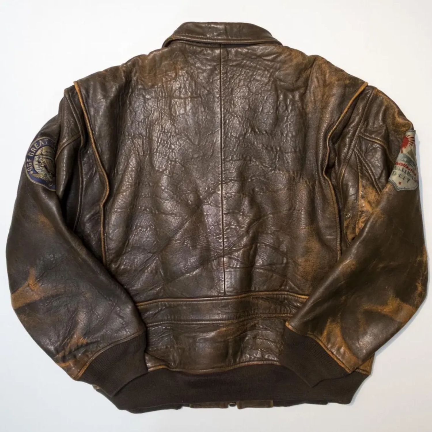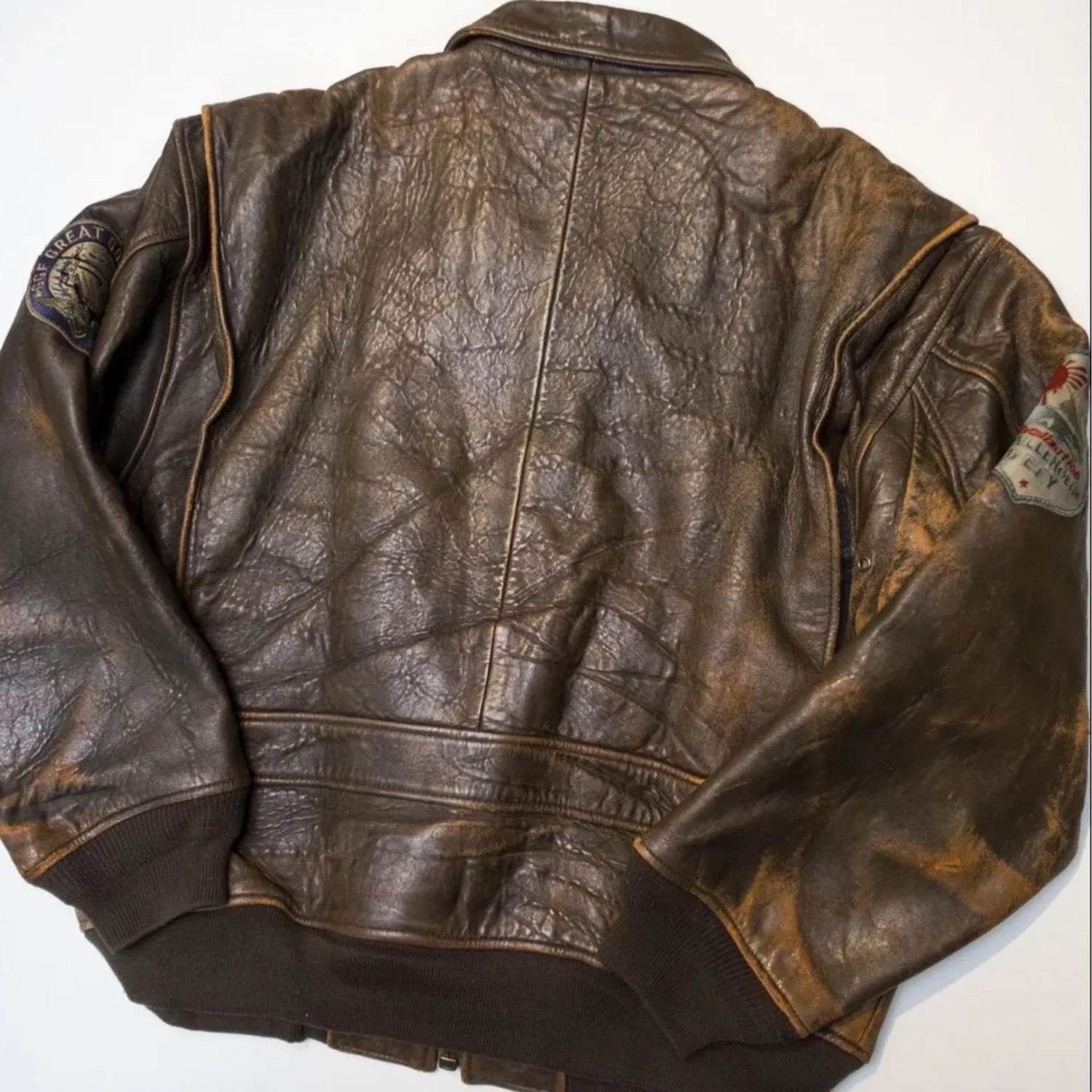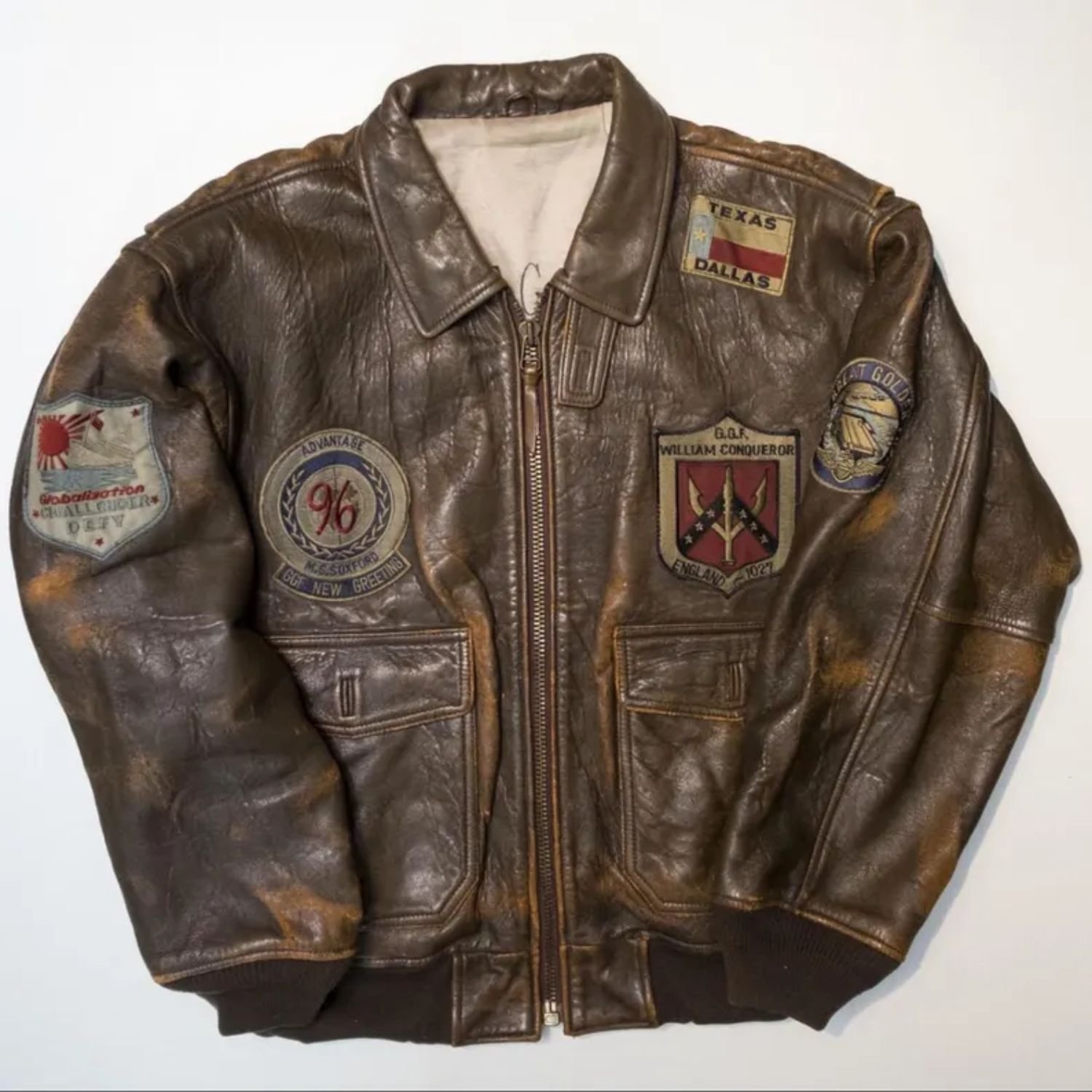 Top Gun Military Flight Vintage 80s England 1027 GGF Texas Dallas Bomber Distressed Brown Leather Jacket