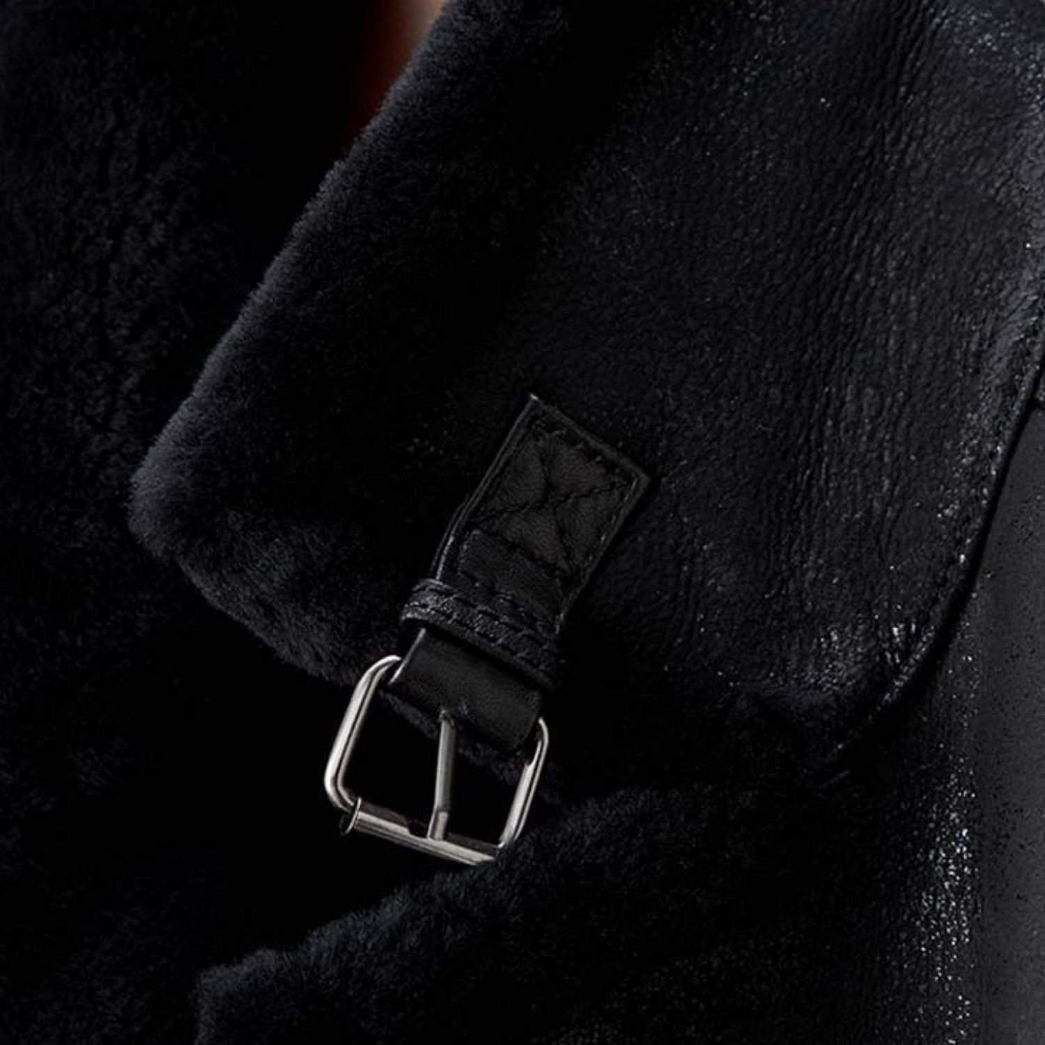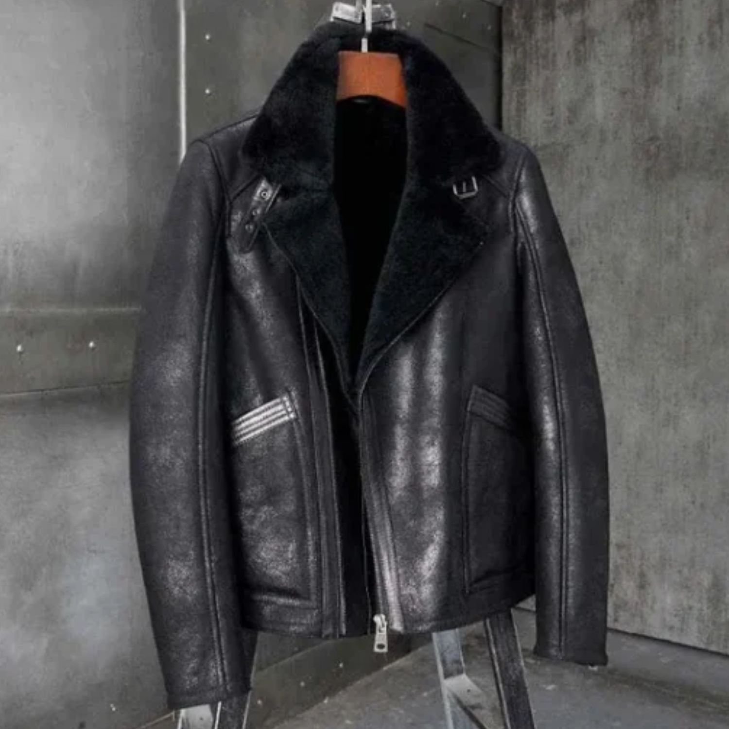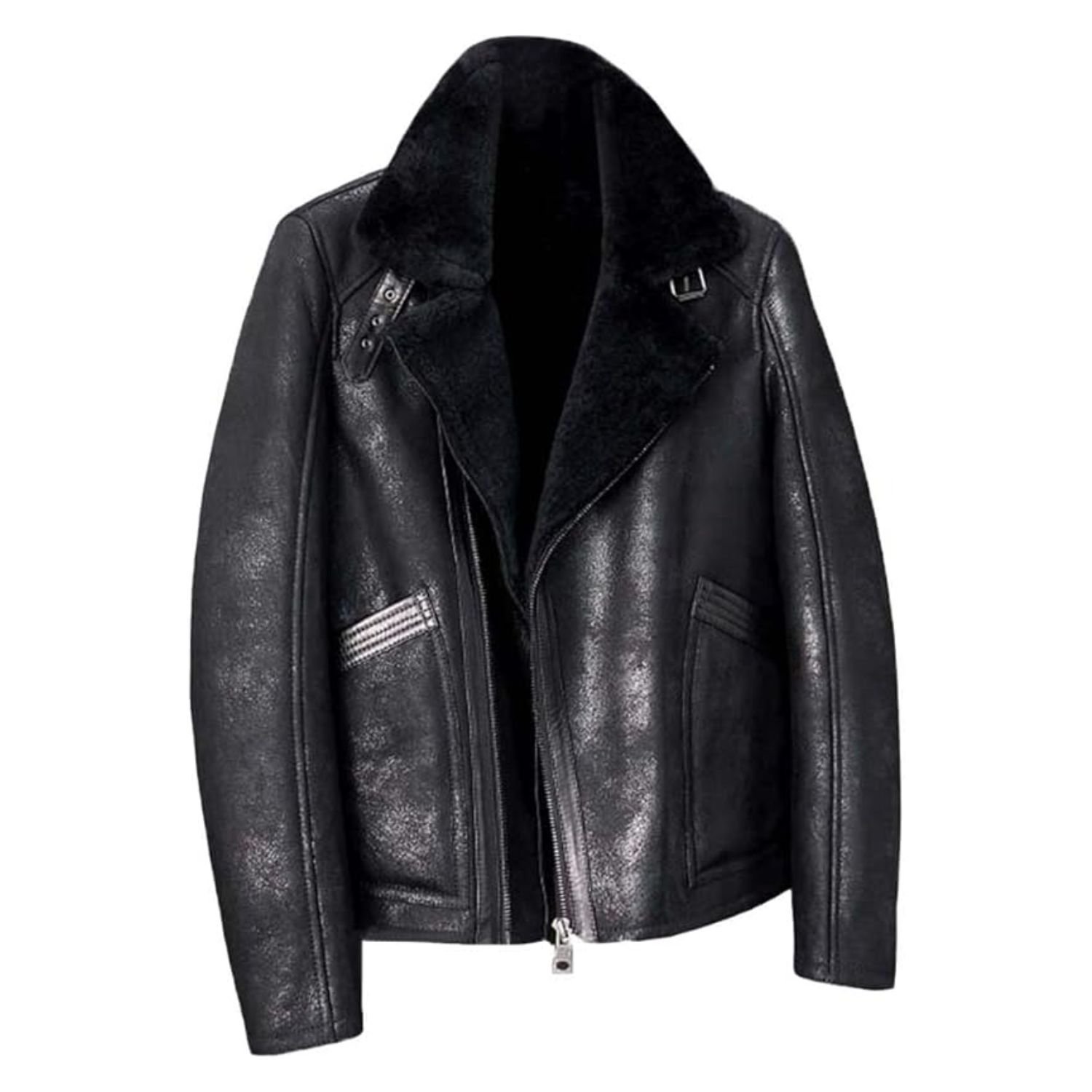 Tyler Distressed Black Asymmetrical Zipper Shearling Fur Genuine Leather Jacket