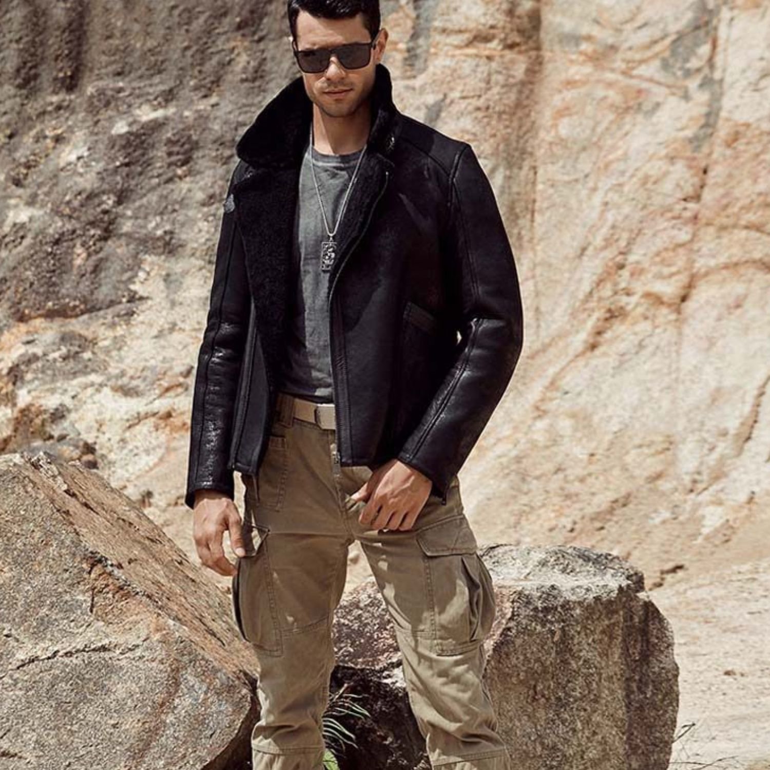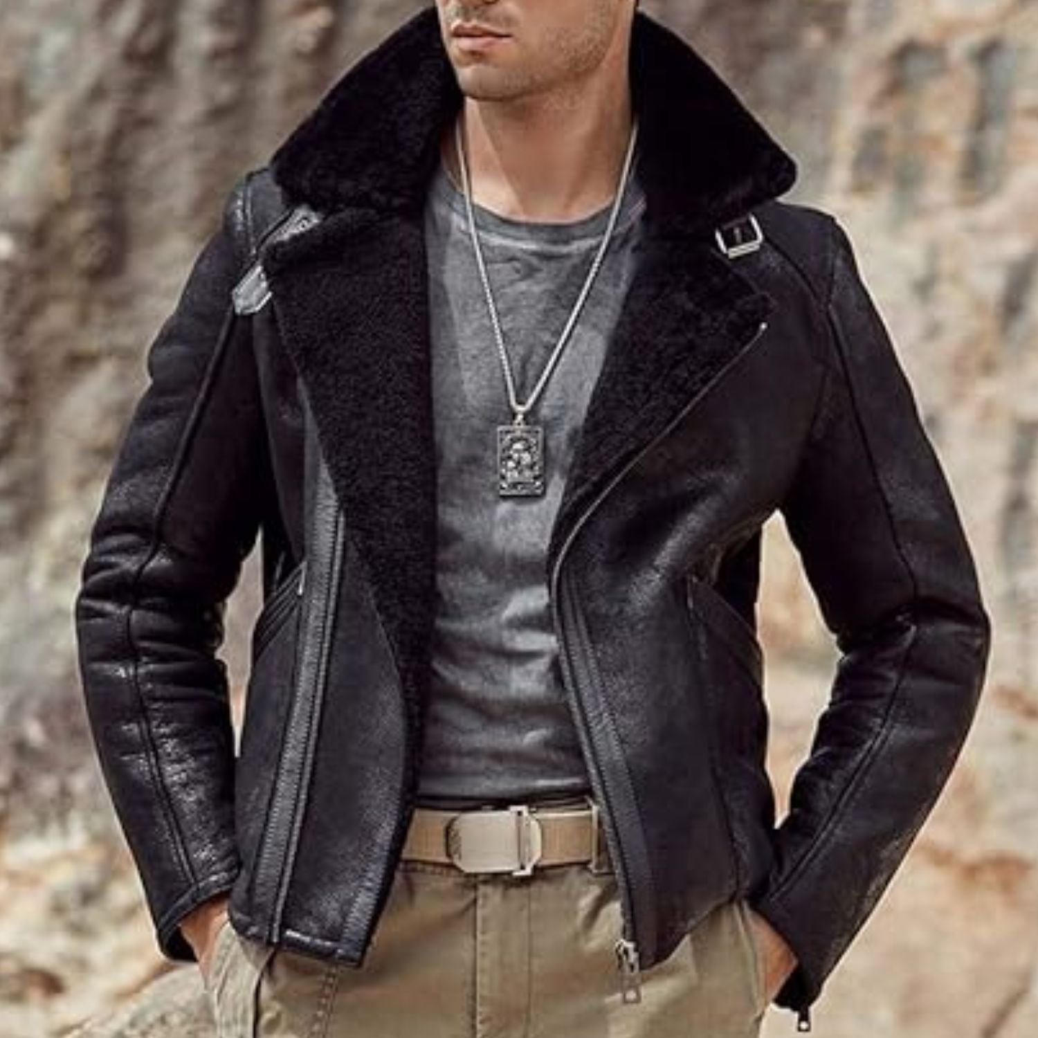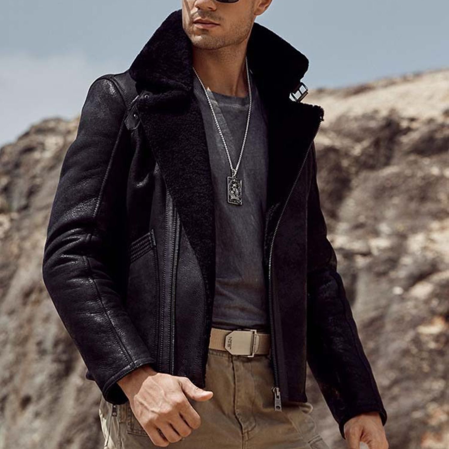 Tyler Distressed Black Asymmetrical Zipper Shearling Fur Genuine Leather Jacket