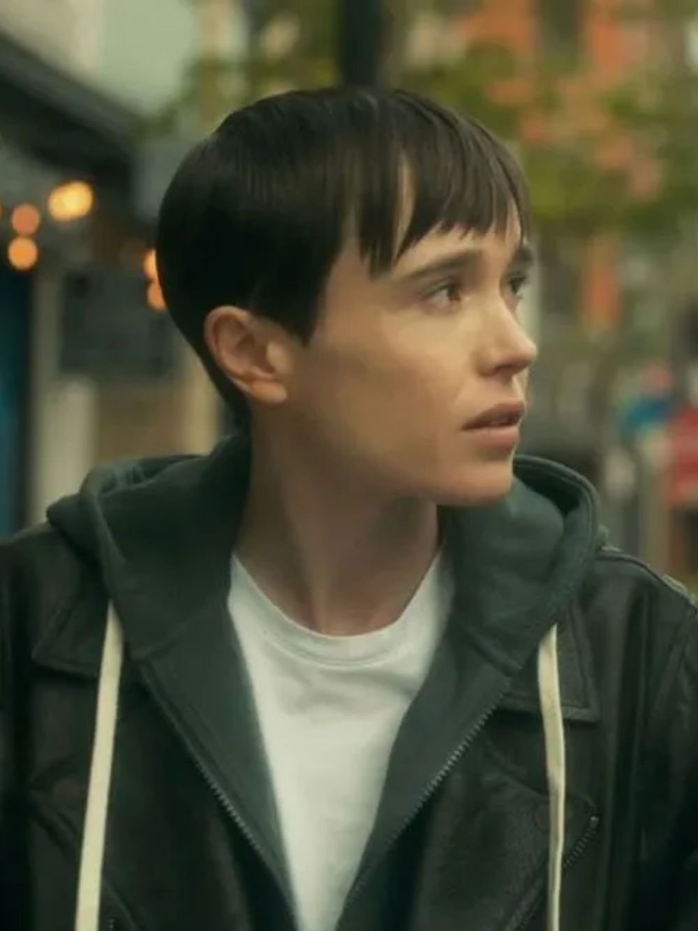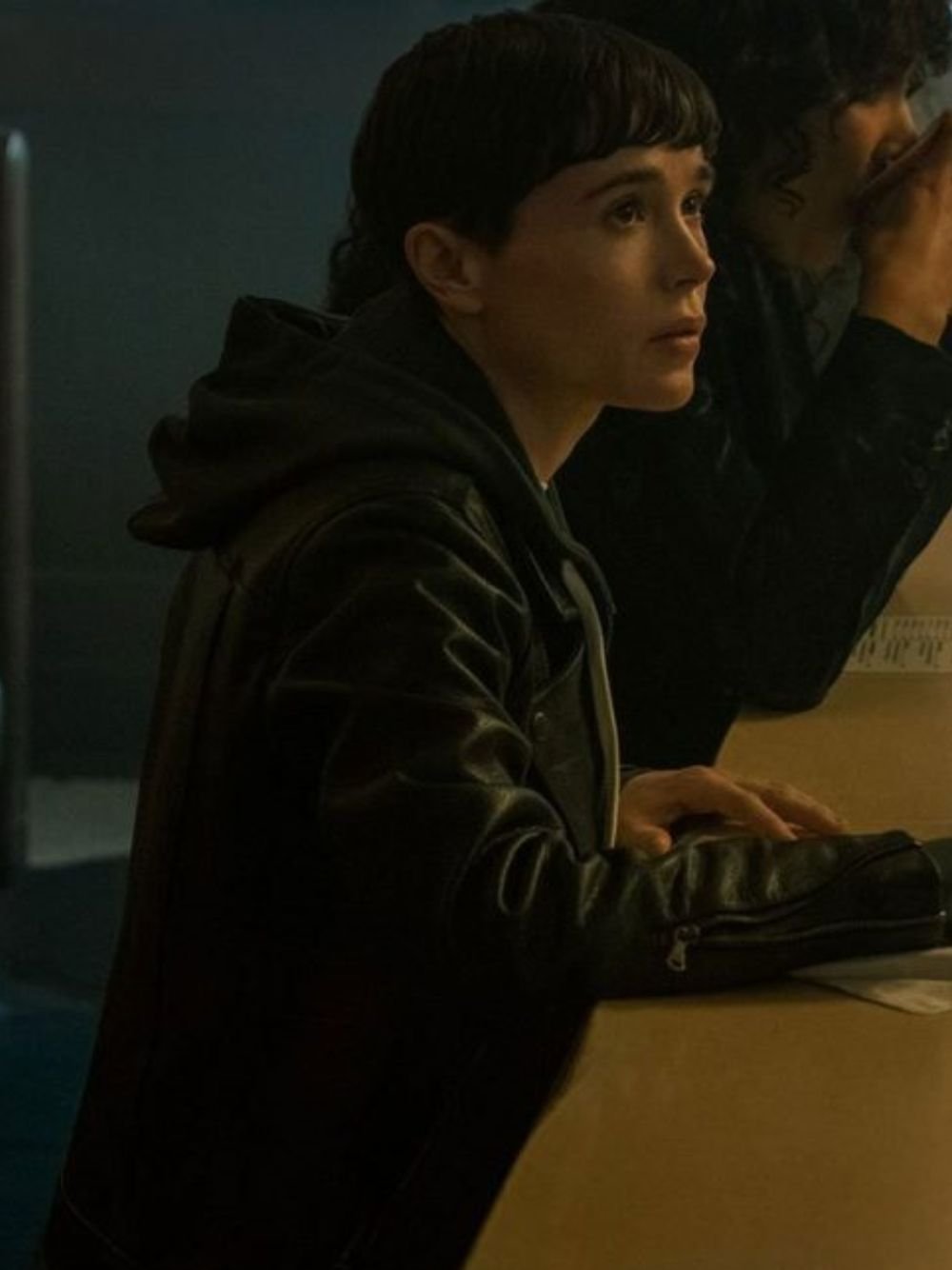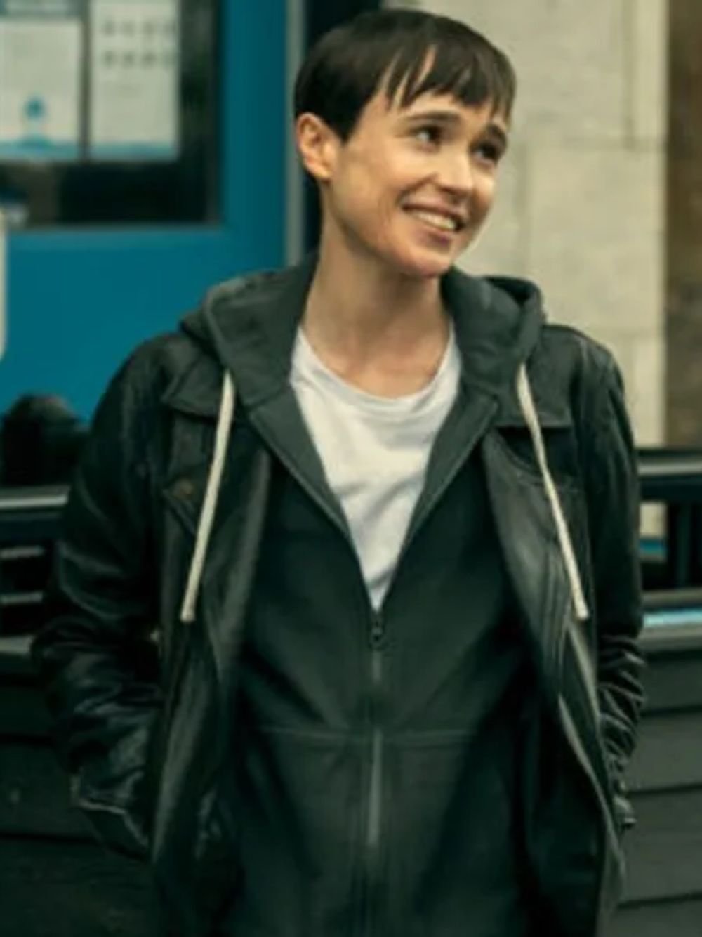 Elliot Page The Umbrella Academy Vanya Hargreeves Black Asymmetrical Zipper Leather Jacket