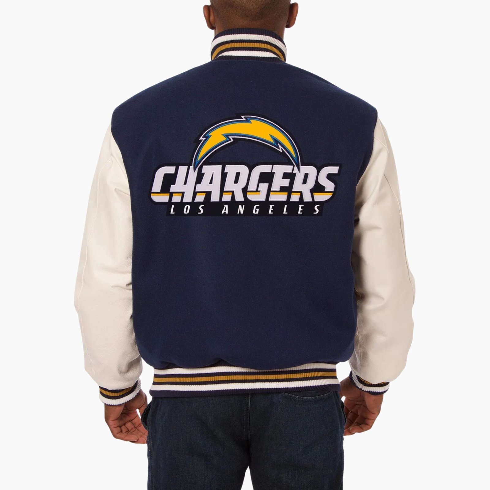 Step into classic sports fashion with the Varsity LA Chargers Navy Blue and White Wool Leather Jacket inspired by the legacy of the Los Angeles Chargers. Designed with authentic varsity appeal, this jacket blends traditional craftsmanship with modern comfort for a standout everyday look.