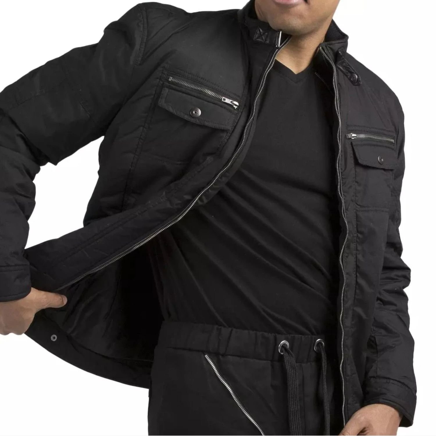 Featuring multiple zippered pockets, this jacket doesn’t just look good it’s practical too. Keep your essentials safe while staying effortlessly cool. The soft inner lining provides added warmth and comfort, making it a great pick for transitional weather.