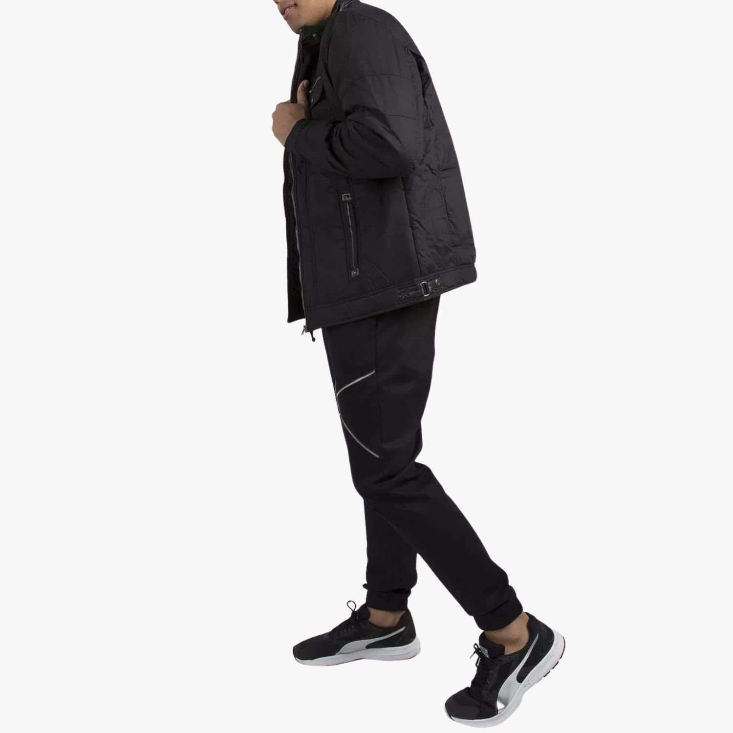 Crafted from durable canvas fabric, the jacket is built to withstand everyday wear while maintaining its sharp silhouette. The padded detailing on the shoulders and arms adds a tough, biker-inspired vibe, while the zip-up front closure ensures a snug and secure fit. The design is both minimal and striking, making it an ideal outerwear choice for casual hangouts, nights out, or chilly rides.