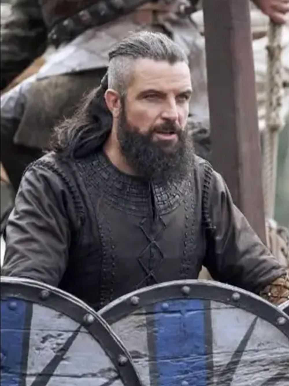 Vikings Valhalla Sam Corlett Grey Leather Fur Trench Coat