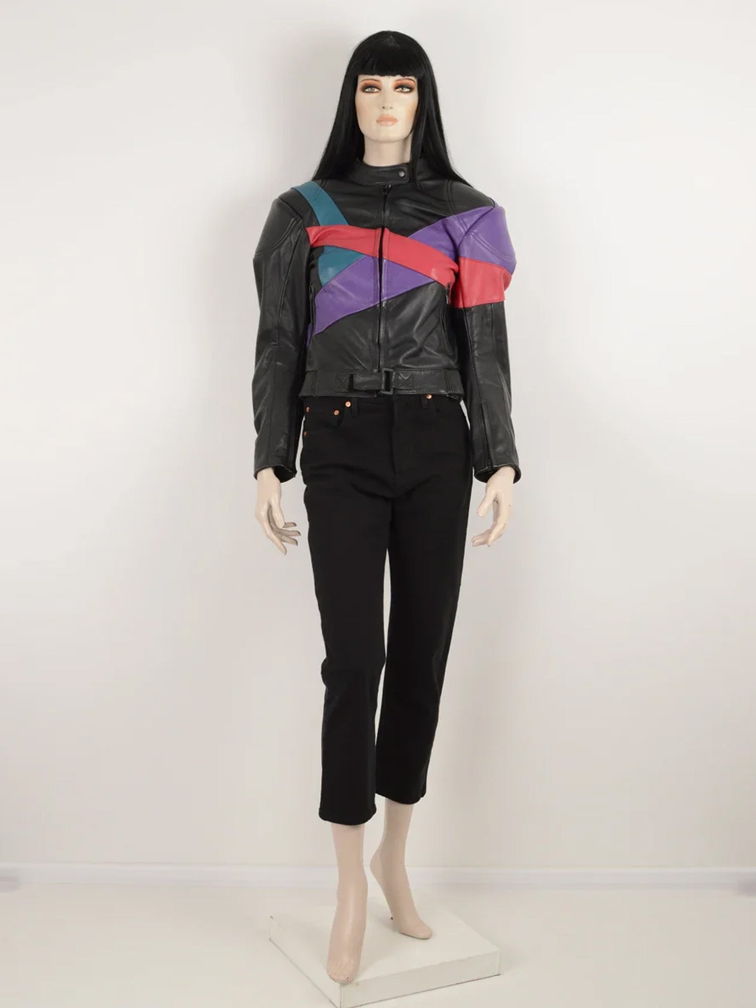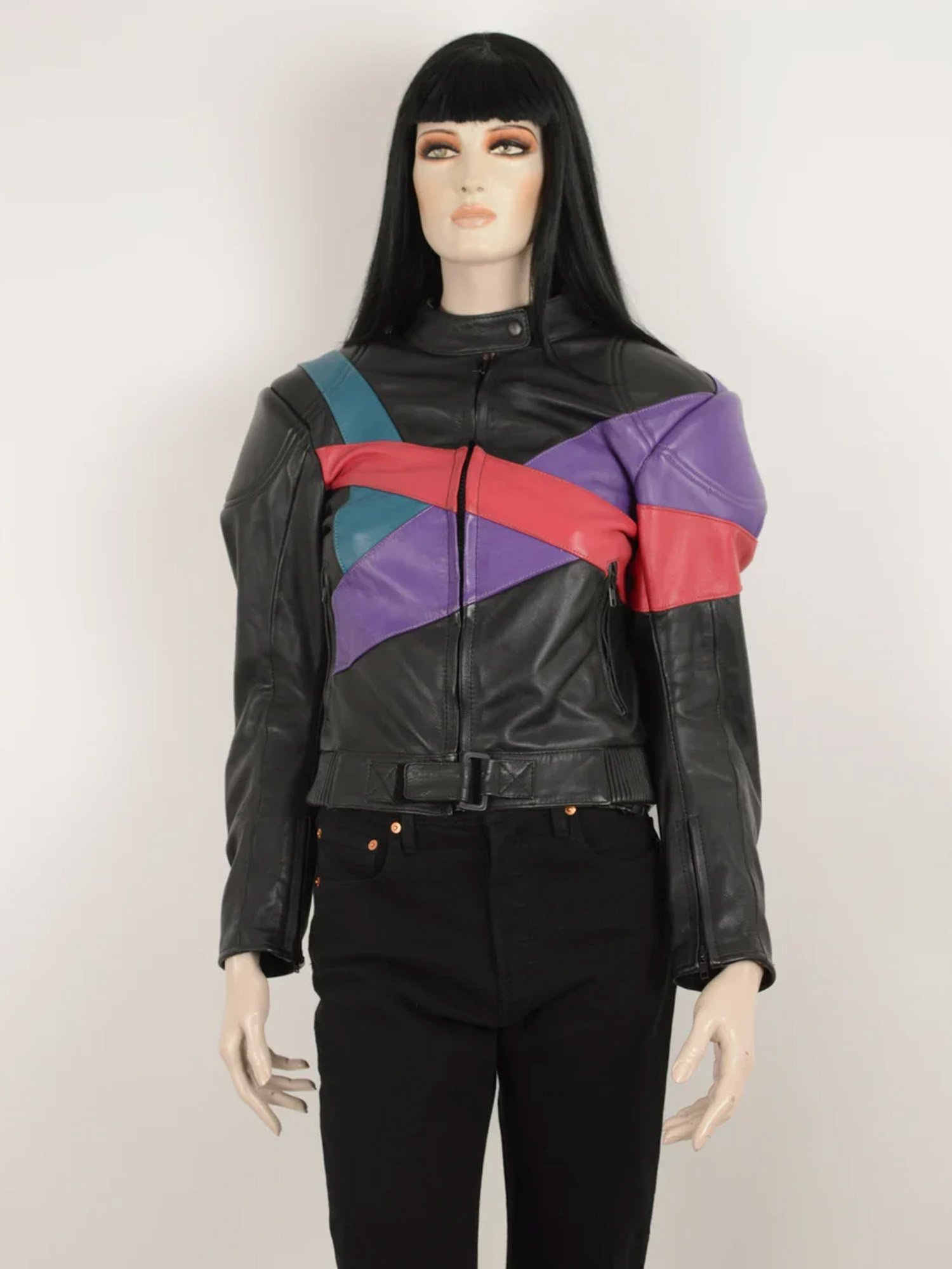 Vintage 90s MQP Black Purple Green Red Leather Jacket – Retro Street Style