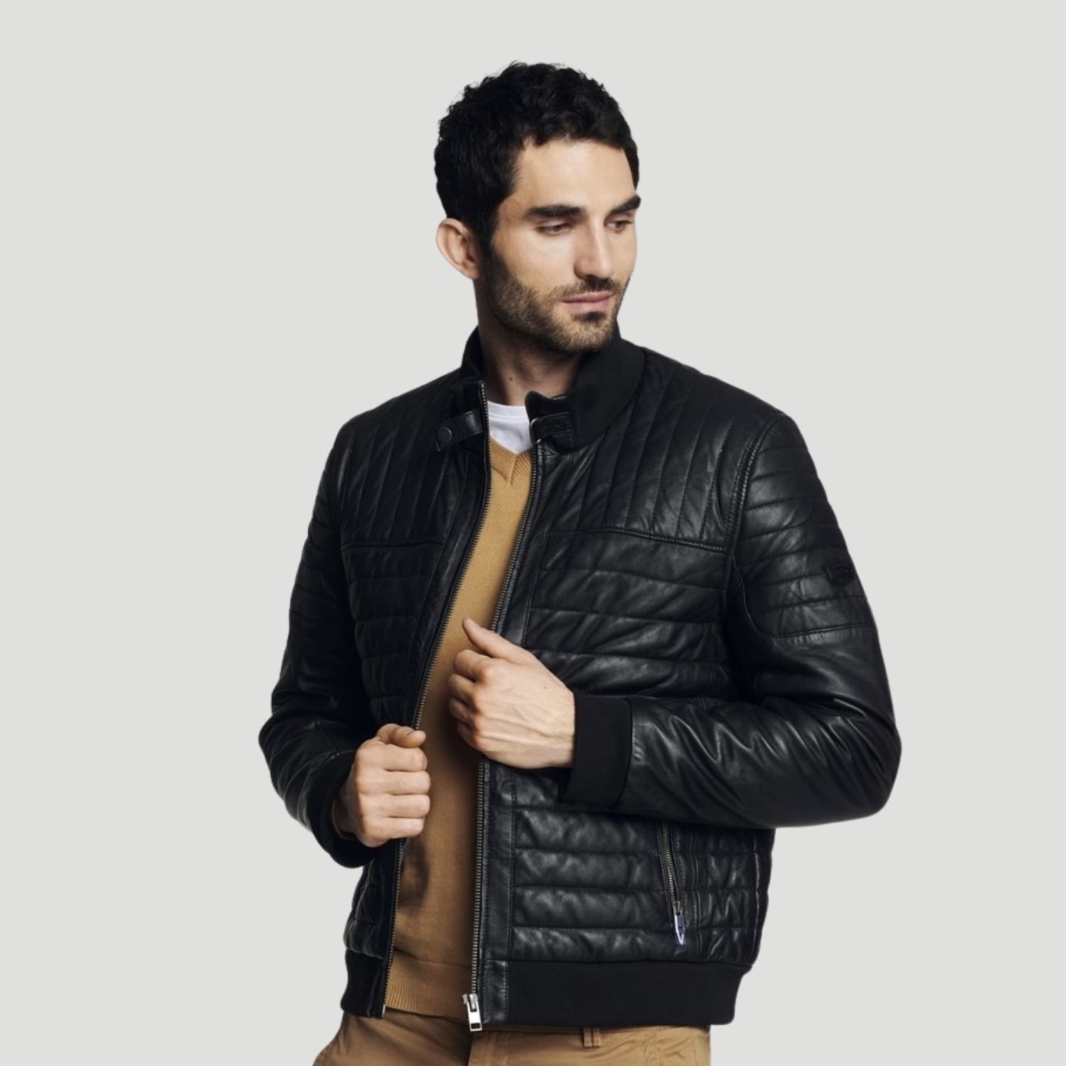 Handcrafted from 100% natural sheep leather, the exterior offers a buttery-soft texture and a rich, authentic grain that synthetic alternatives simply cannot match. Unlike standard leather jackets that can feel stiff in the cold, this model features a specialized composition of 98% cotton and 2% elastane in key areas, providing just enough stretch to ensure a comfortable, non-restrictive fit over thick winter knitwear.
