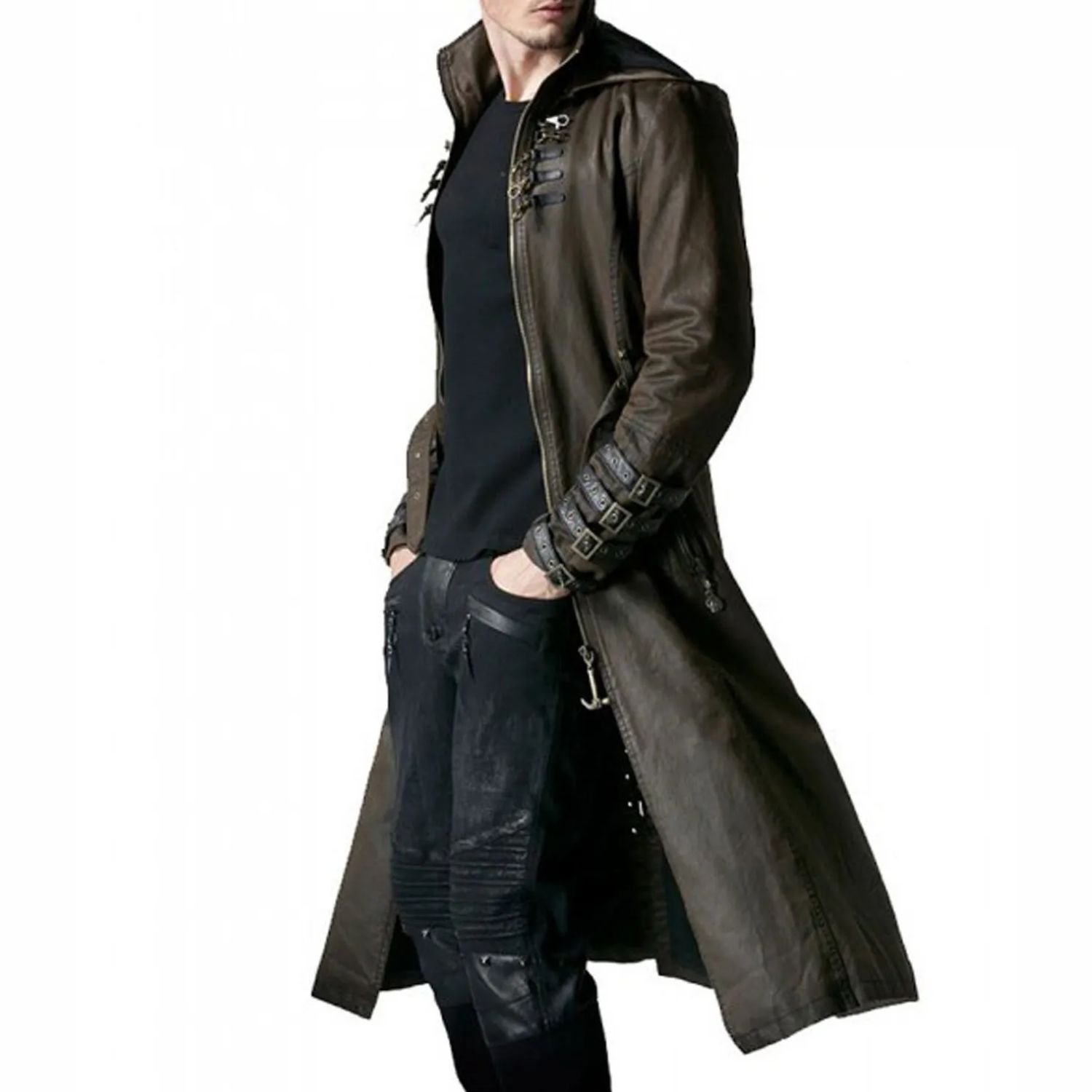 Wasteland Steampunk Brown Long Leather Trench Coat