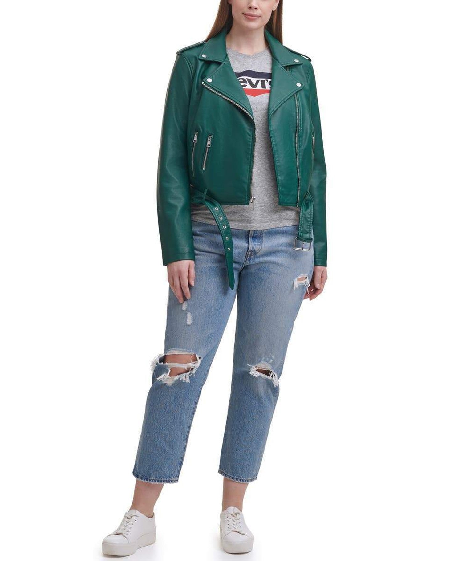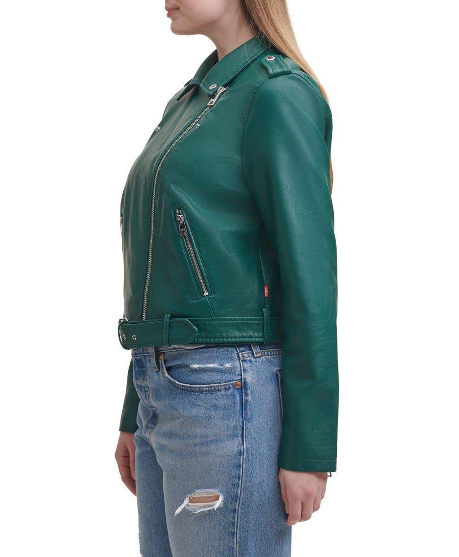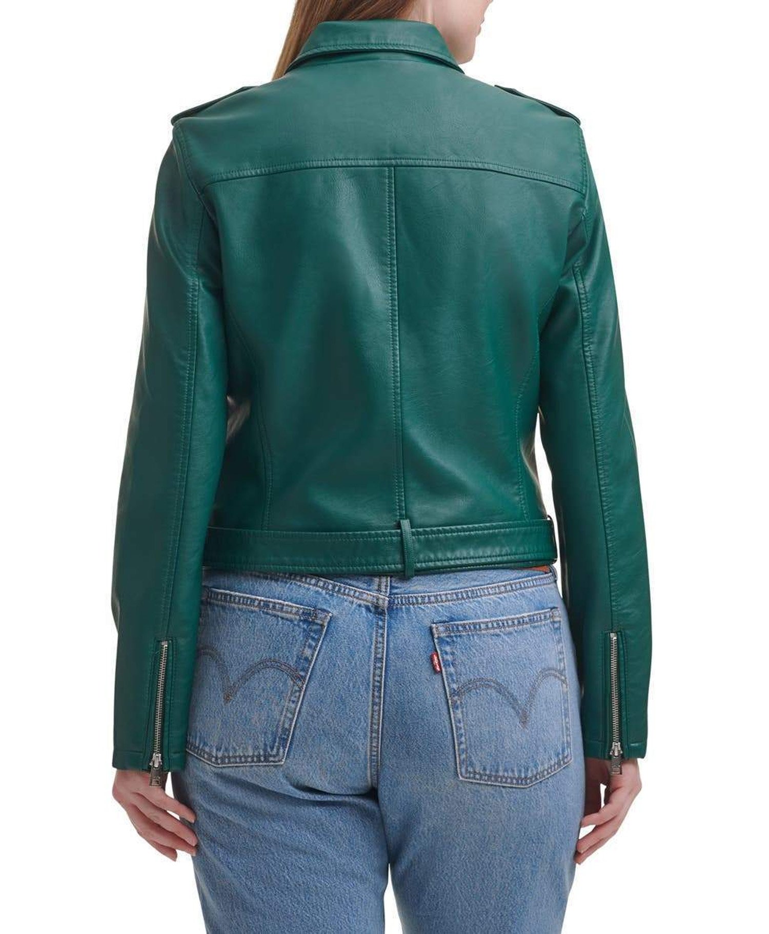 Water Repellent Leather Fashion Belted Moto Jacket Green – Stylish & Functional
