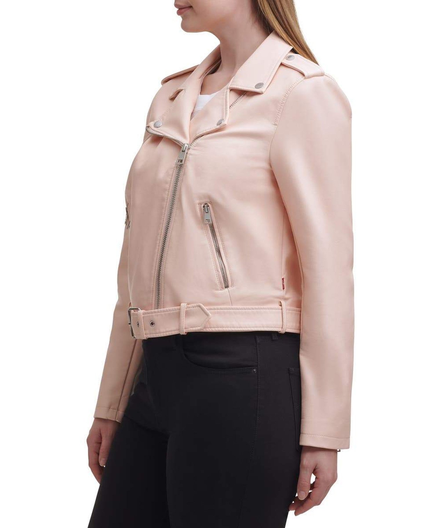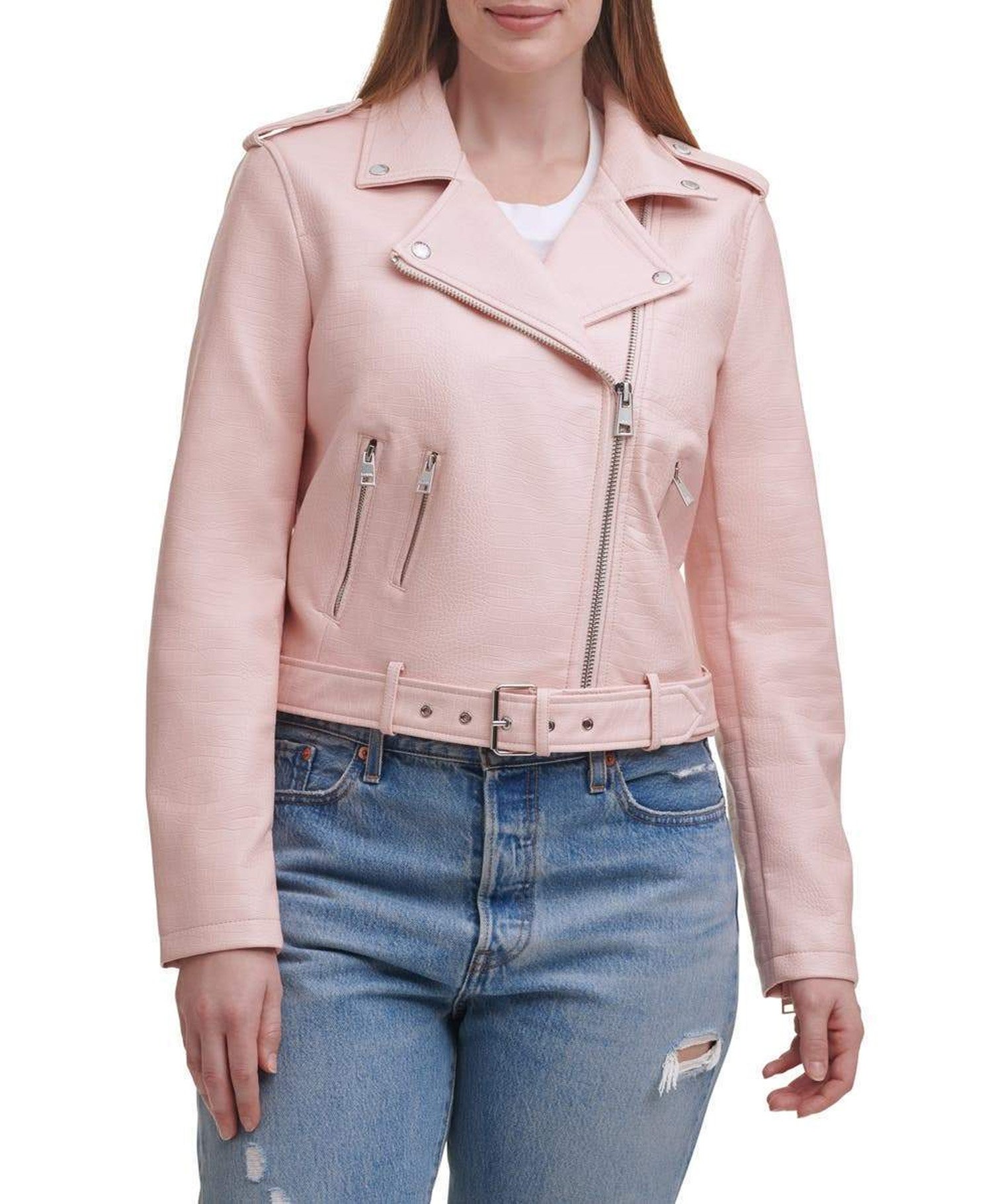 Water Repellent Leather Fashion Belted Moto Jacket Pink – Stylish & Functional