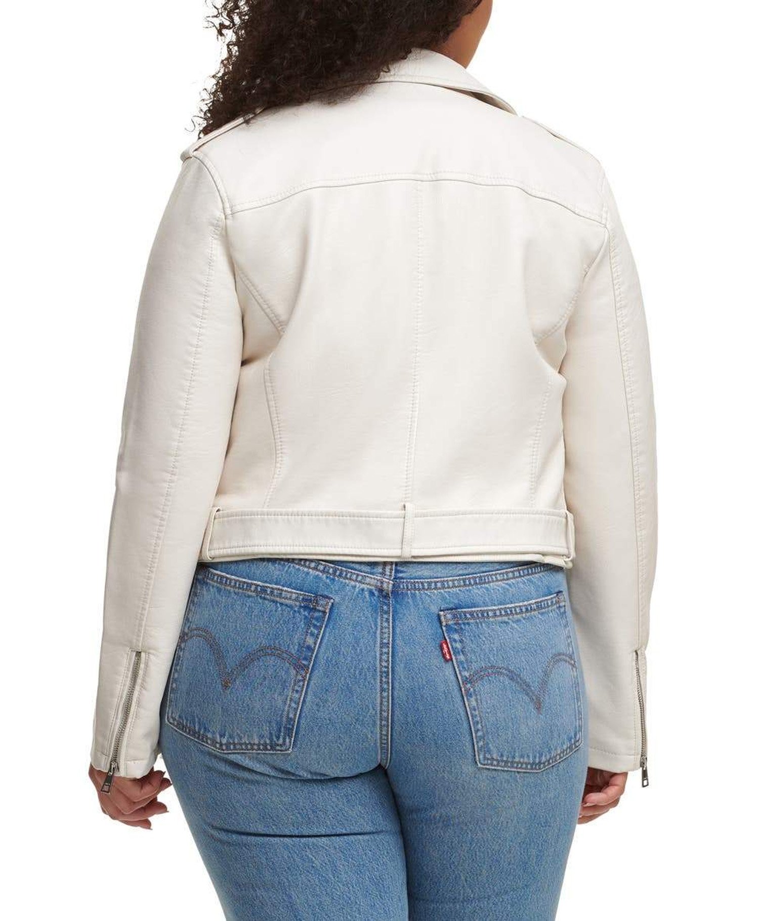Water Repellent Leather Fashion Belted Moto Jacket White – Stylish & Functional
