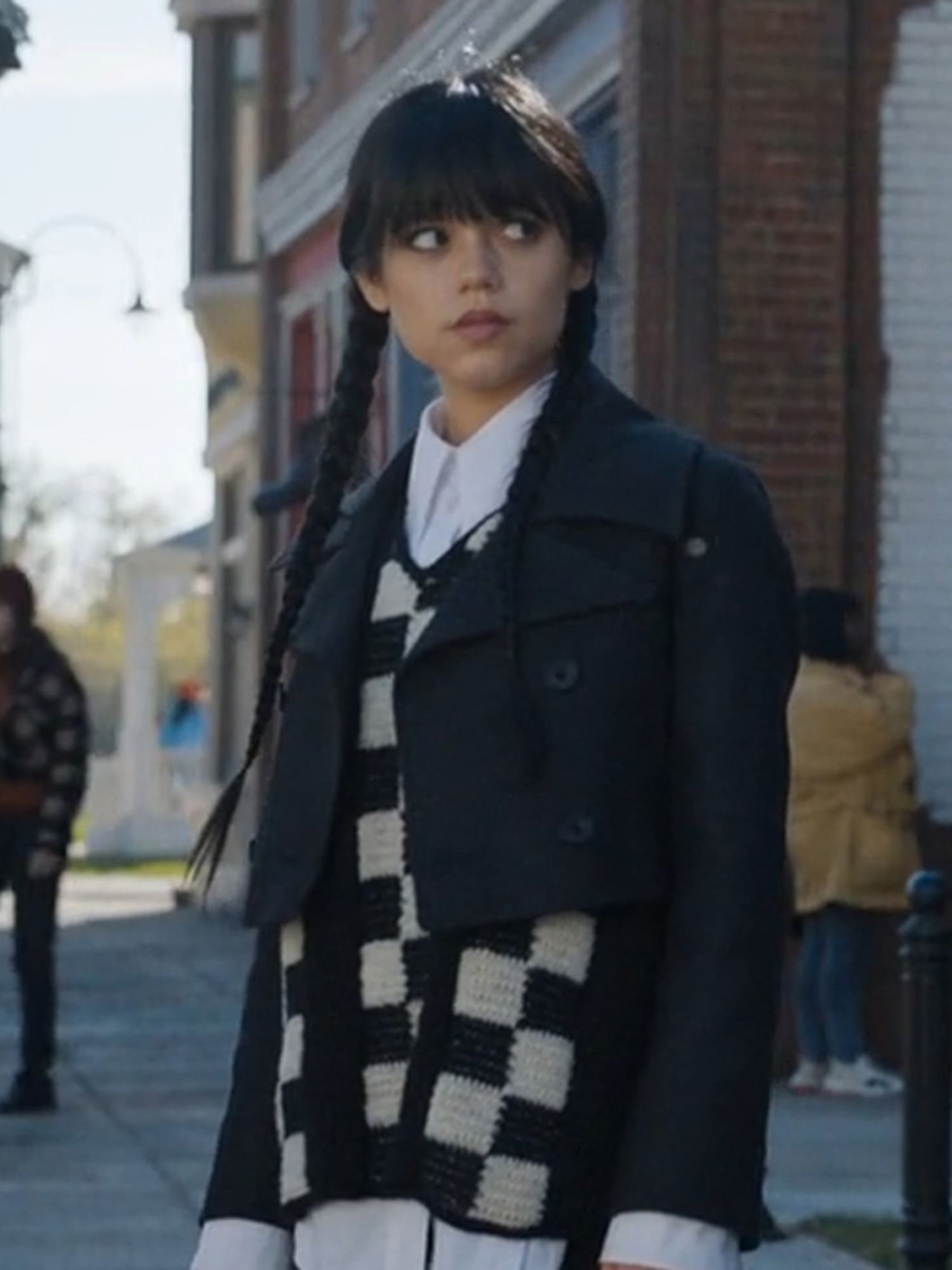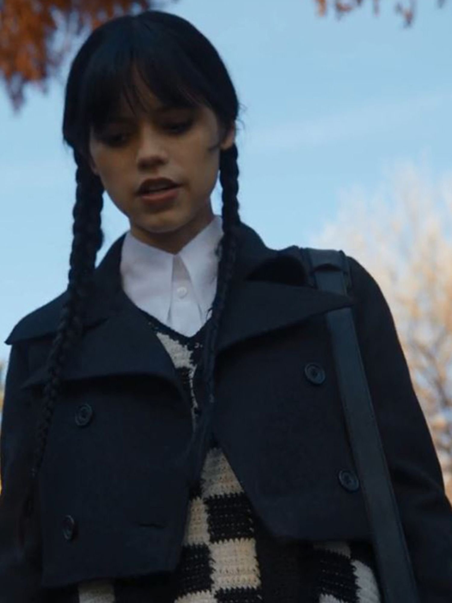 Jenna Ortega Tv Series Wednesday 2022 Addams Black Crop Coat