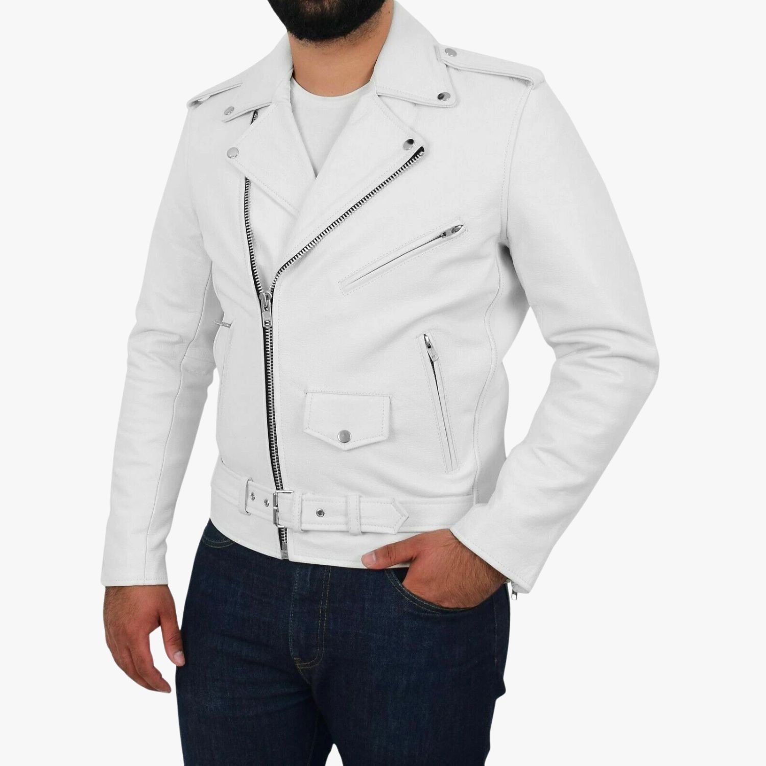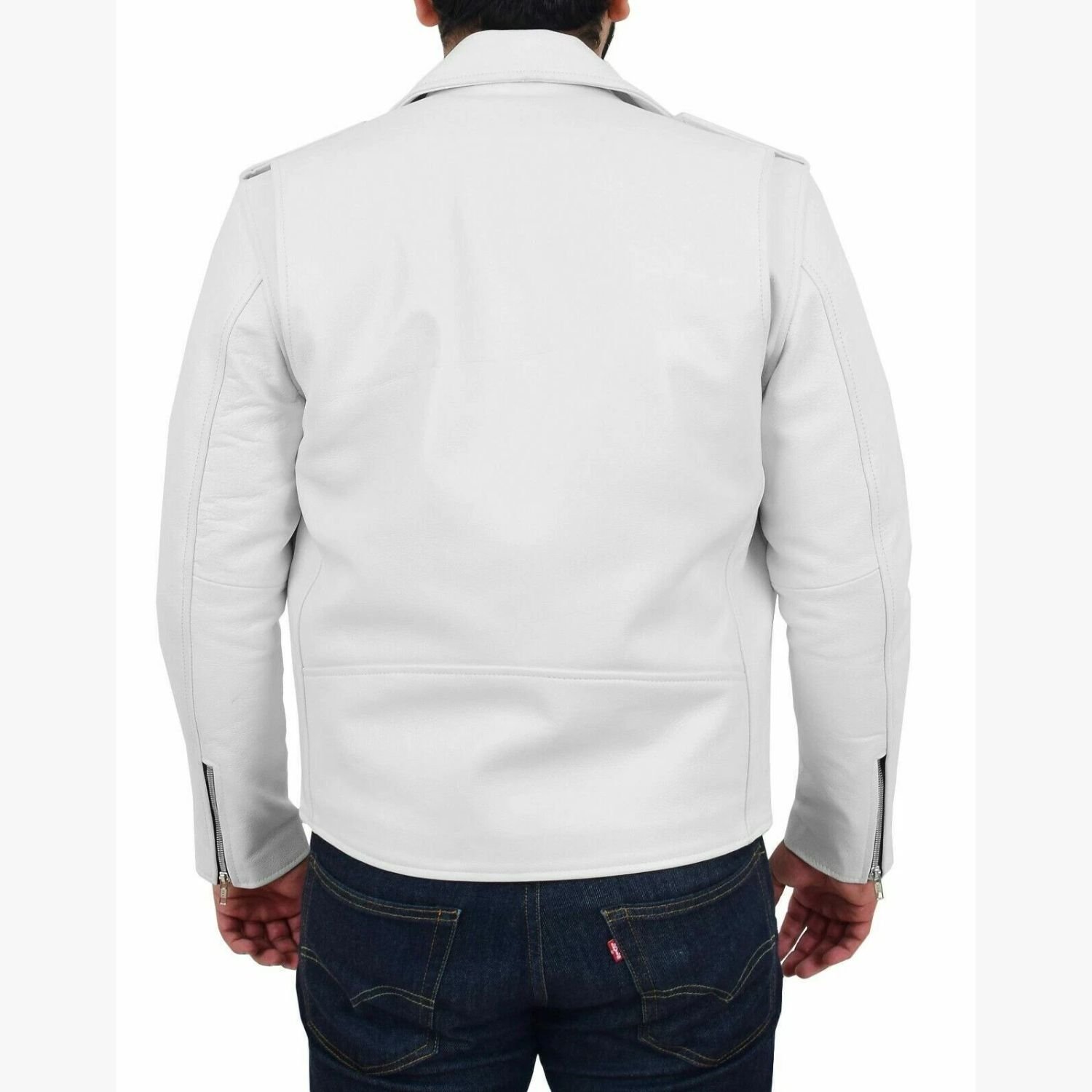 White Leather Jacket Biker Lambskin Slim Fit