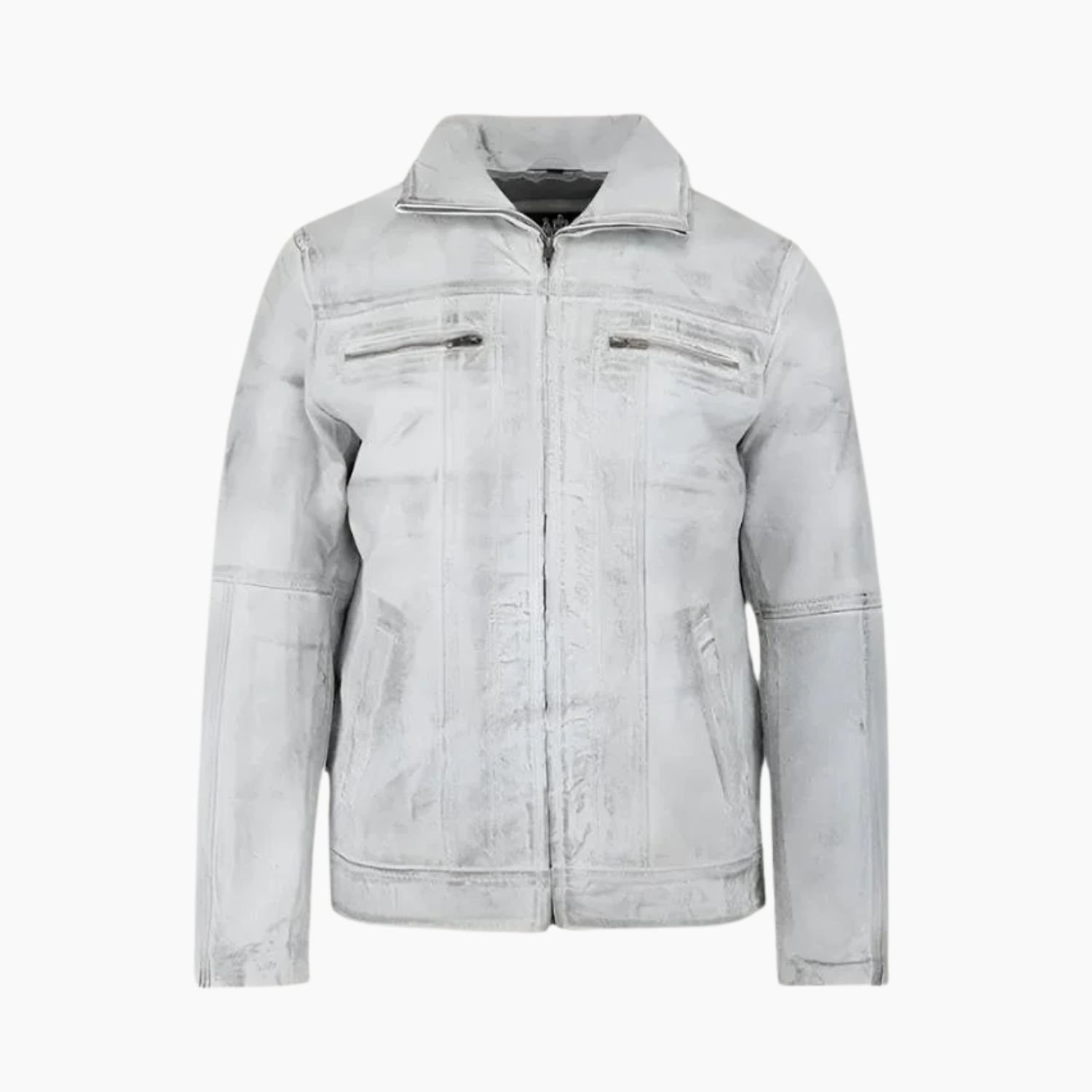 White Wax Leather Biker Jacket
