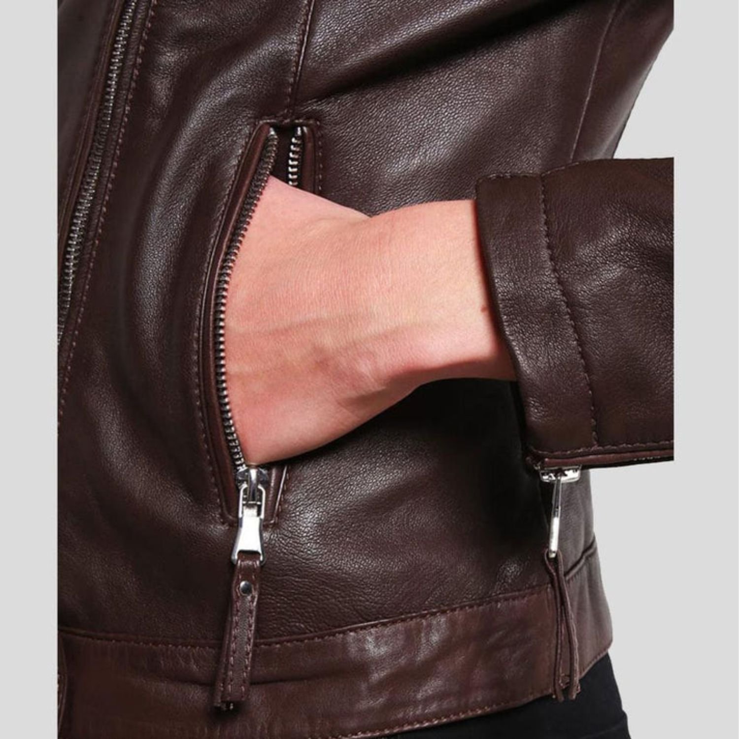 Women’s Biker Brown Slim Fit Motorcycle Jacket
