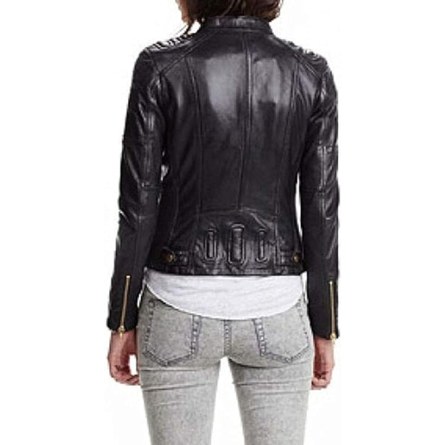 Women Biker Cafe Racer Black Genuine Lambskin Leather Jacket