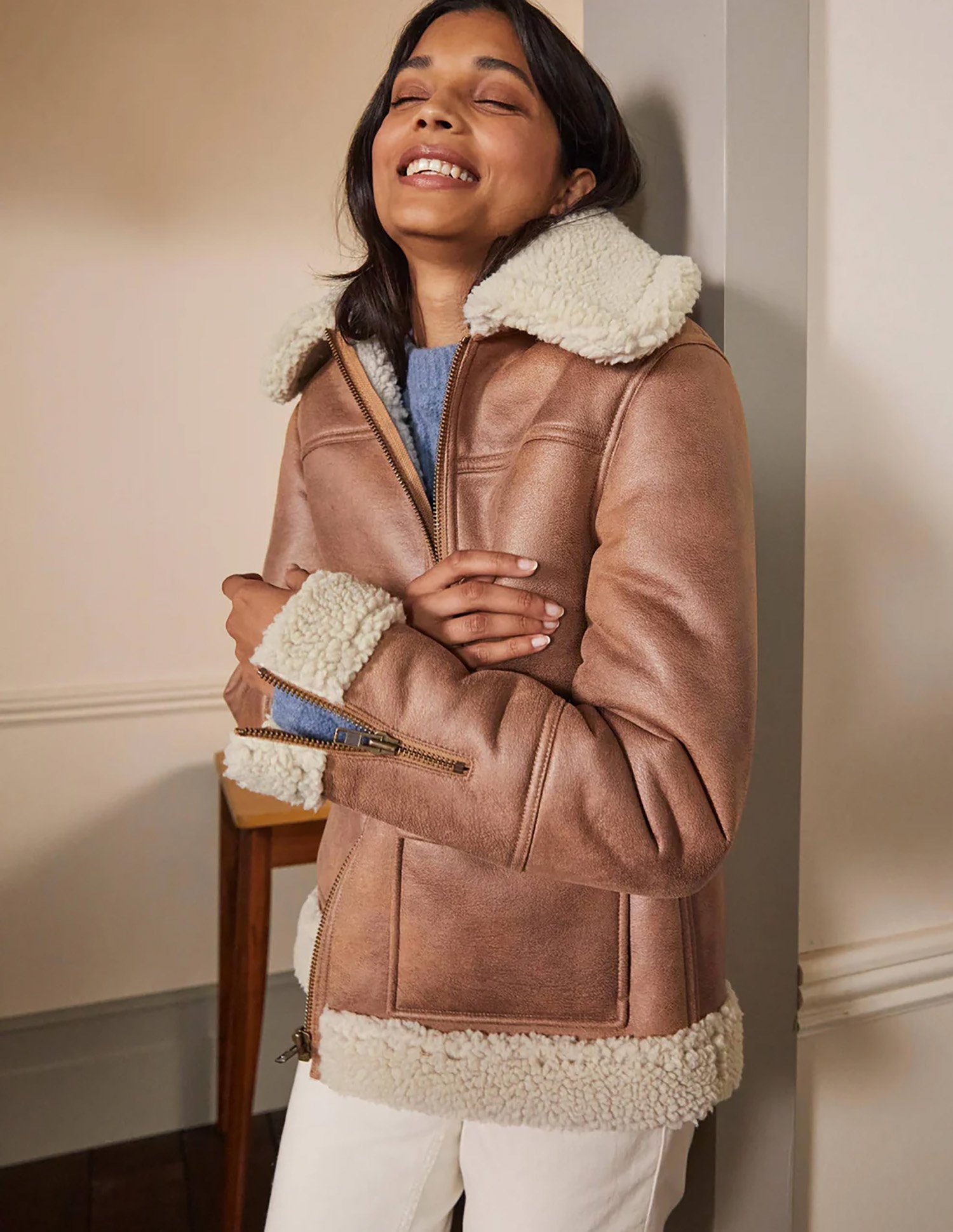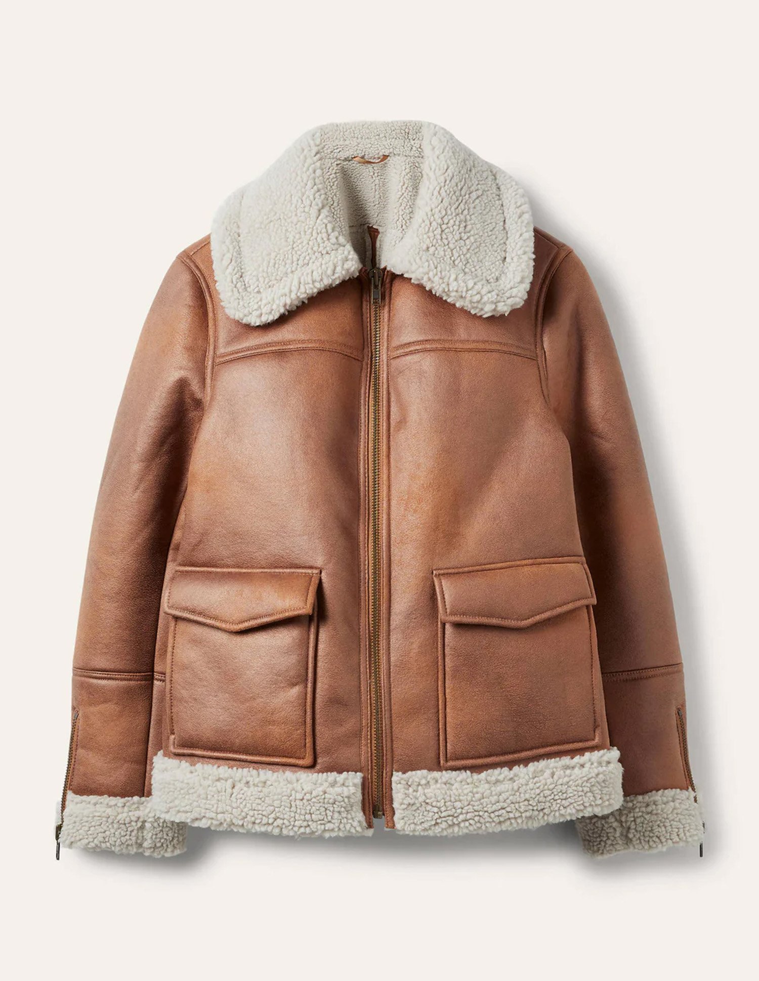 Women’s Brown Sheepskin Genuine Shearling Leather Aviator Jacket – Luxury & Warmth