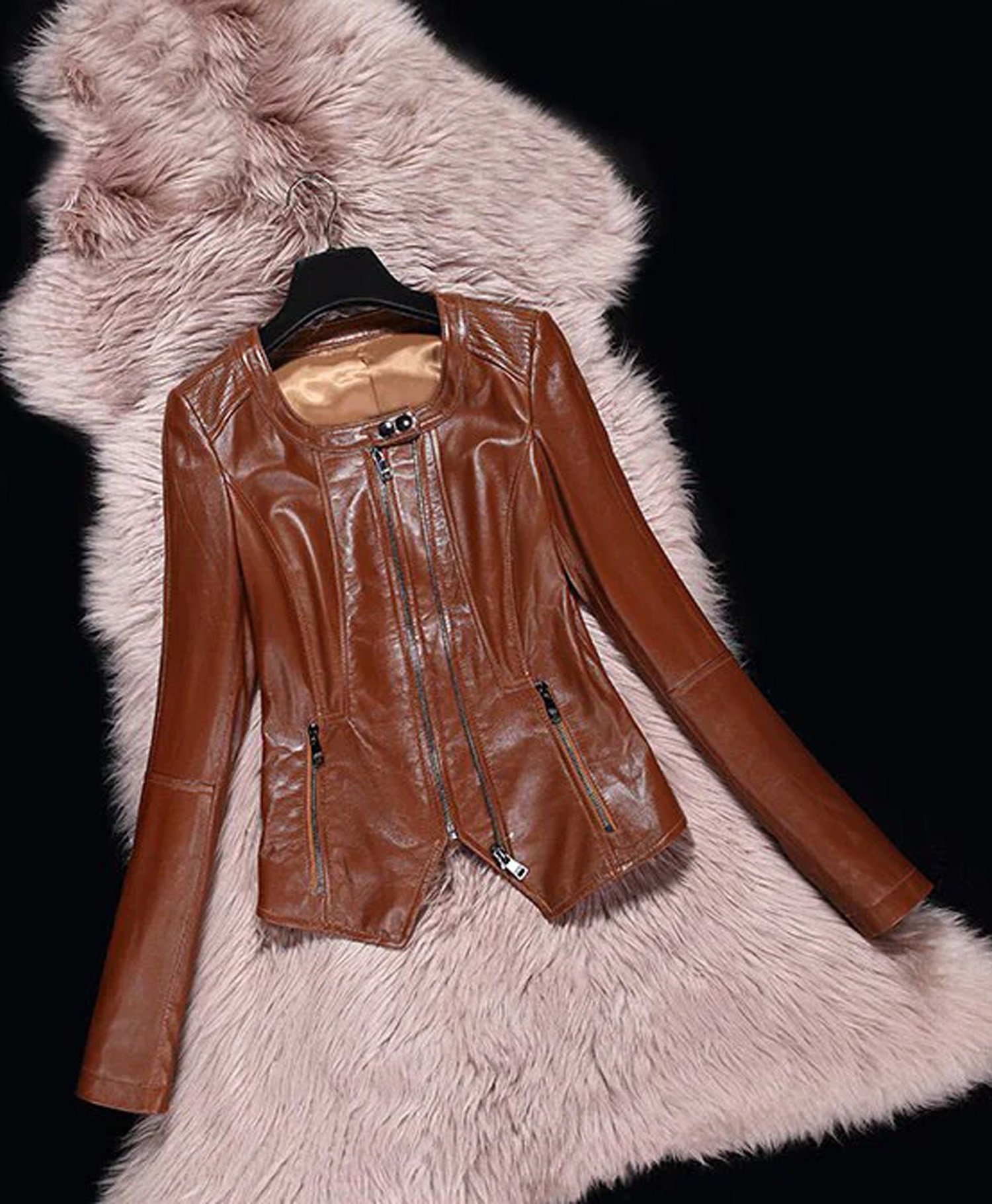 Made from high quality sheepskin leather, this jacket is both lightweight and durable, ensuring all day comfort. The buttery soft texture molds to your body, providing a flattering fit while keeping you warm and stylish. The semi aniline finish enhances its rich, polished look, making it a statement piece for any occasion.
