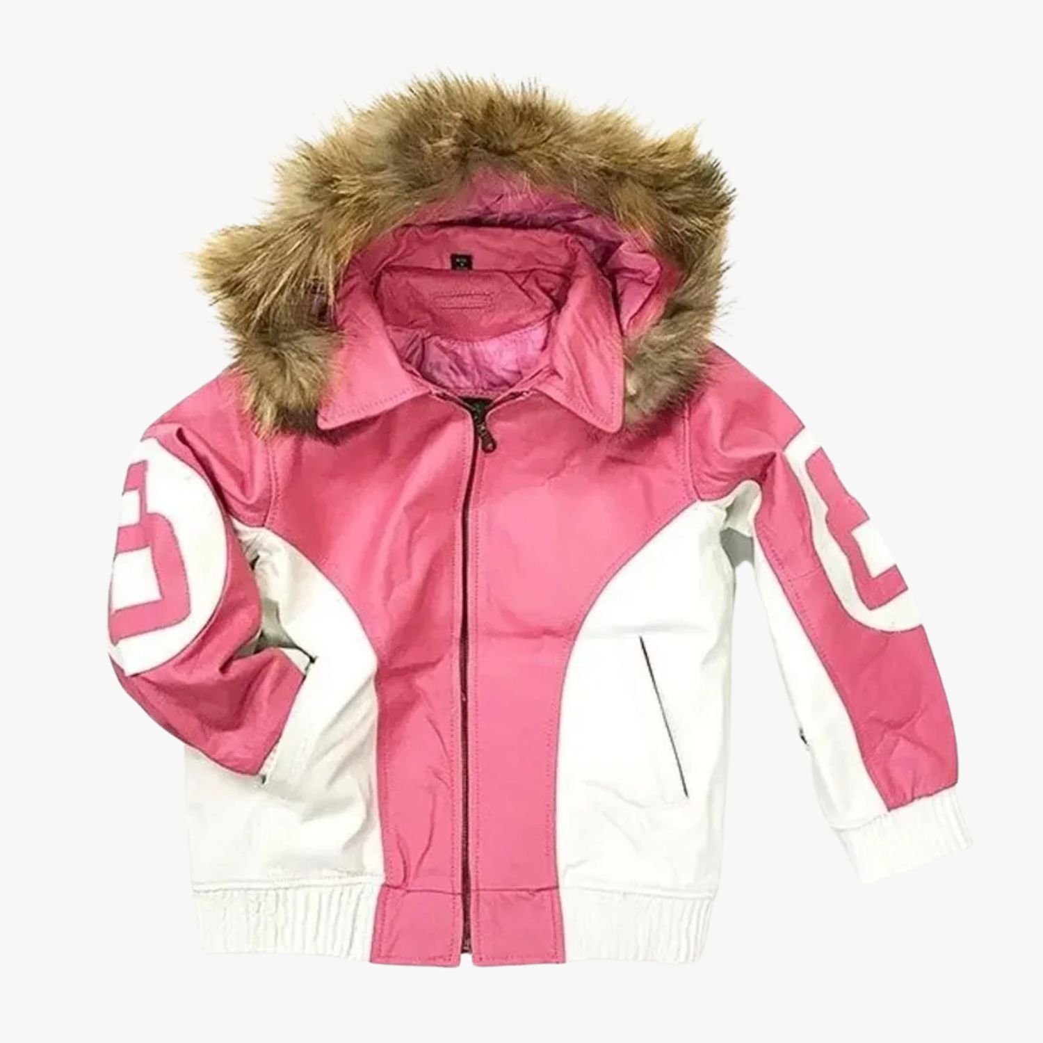 The Womens 8 Ball Pink Leather Fur Hooded Jacket is the ultimate statement piece for the modern fashionista. Crafted from premium genuine leather, this jacket features a striking pink and white color-blocked design that is both playful and sophisticated. The soft pink hue provides a feminine twist on the classic urban bomber, while the white accents create a clean, high-contrast look. To ensure you stay warm and comfortable in any climate, the interior is lined with a smooth viscose material that glides over your clothing and provides excellent breathability.