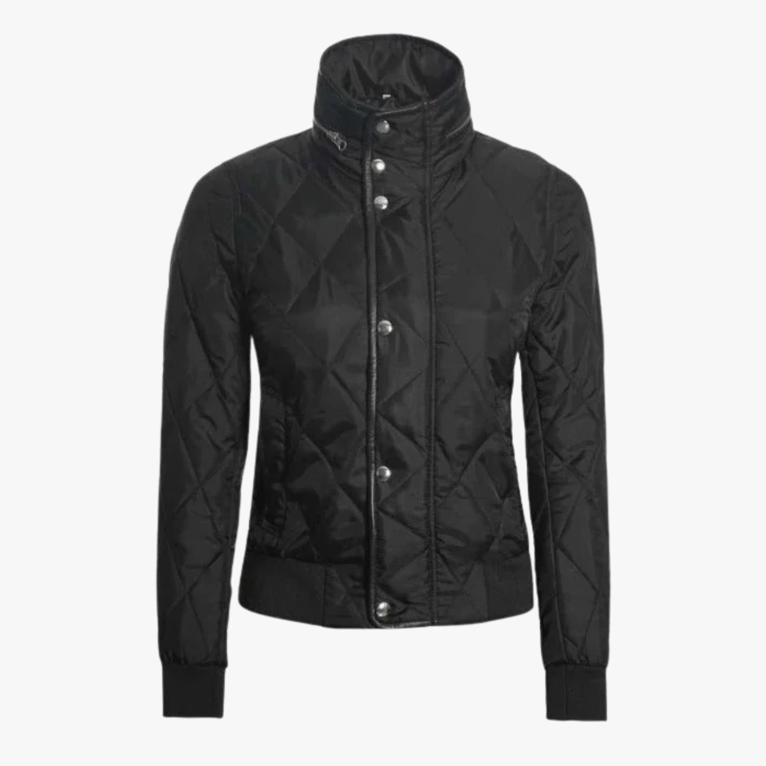 Womens Black Quilted Jacket Tailored Fit Outerwear